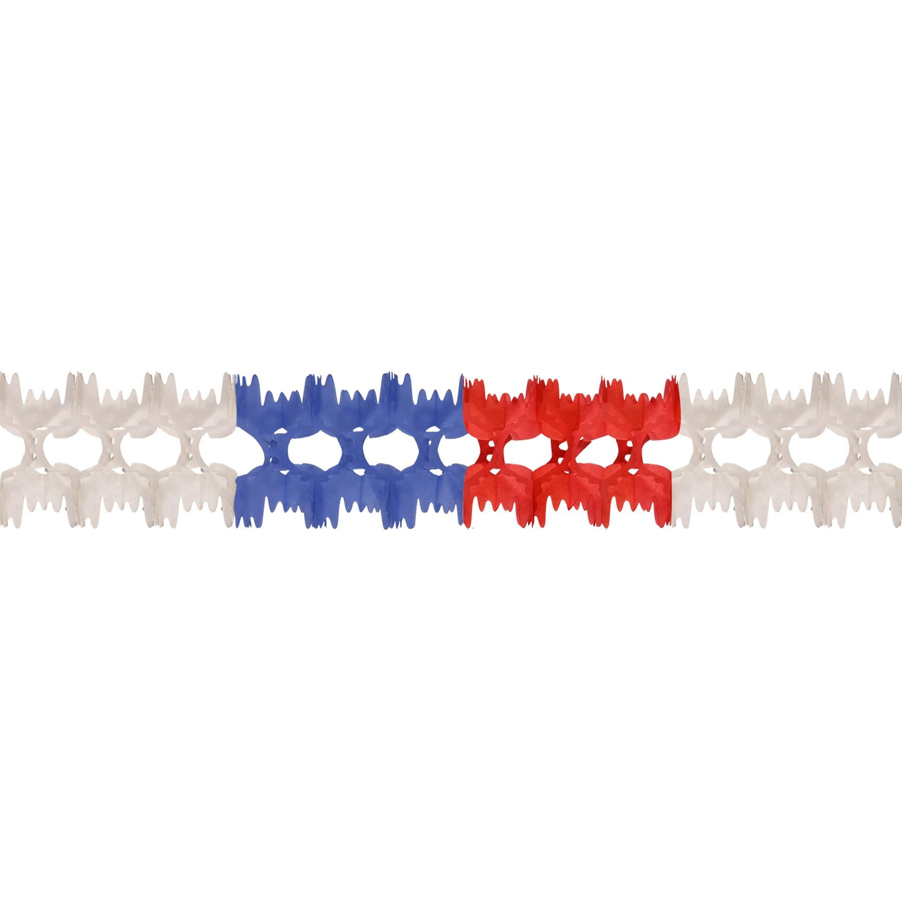 Product Description: This Arcade Garland is the perfect addition to your Patriotic-themed party. The vibrant red, white, and blue colors will bring a festive atmosphere to any occasion. It is 5.5" x 12' in size and is made of high-quality regular tissue. With this item, you can quickly and easily decorate your venue and create a patriotic atmosphere. Plus, it ships from our Pennsylvania warehouse within one business day, so you can get it fast. Whether you're throwing a party or just want to show off your patriotism, this Arcade Garland is a great choice. Show off your love for the United States and make your next party a success with this festive decoration.