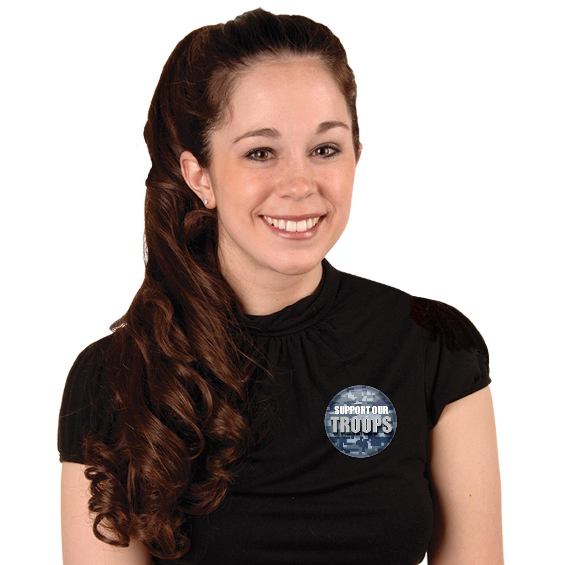 Product Description: Show your support and patriotism with this Air Force Blue/Camo Proud To Support Our Troops Button from BulkPartySupplies.com! This package contains one 2-inch pin-back button with a patriotic design. It's perfect for showing your pride in our military and is ideal for patriotic and 4th of July parties. The button is made of quality materials and is sure to last for years to come. Plus, it ships from the Pennsylvania warehouse within one business day, so you'll have it in no time. Show your pride in the armed forces and order your Air Force Blue/Camo Proud To Support Our Troops Button today!