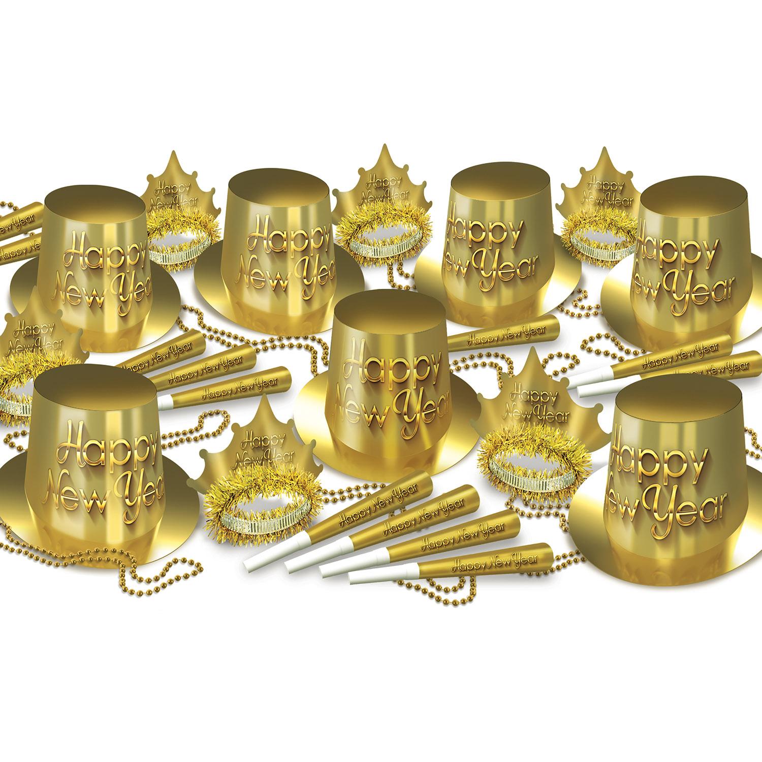 Gold Entertainer New Year's Eve Party Kit for 50 People