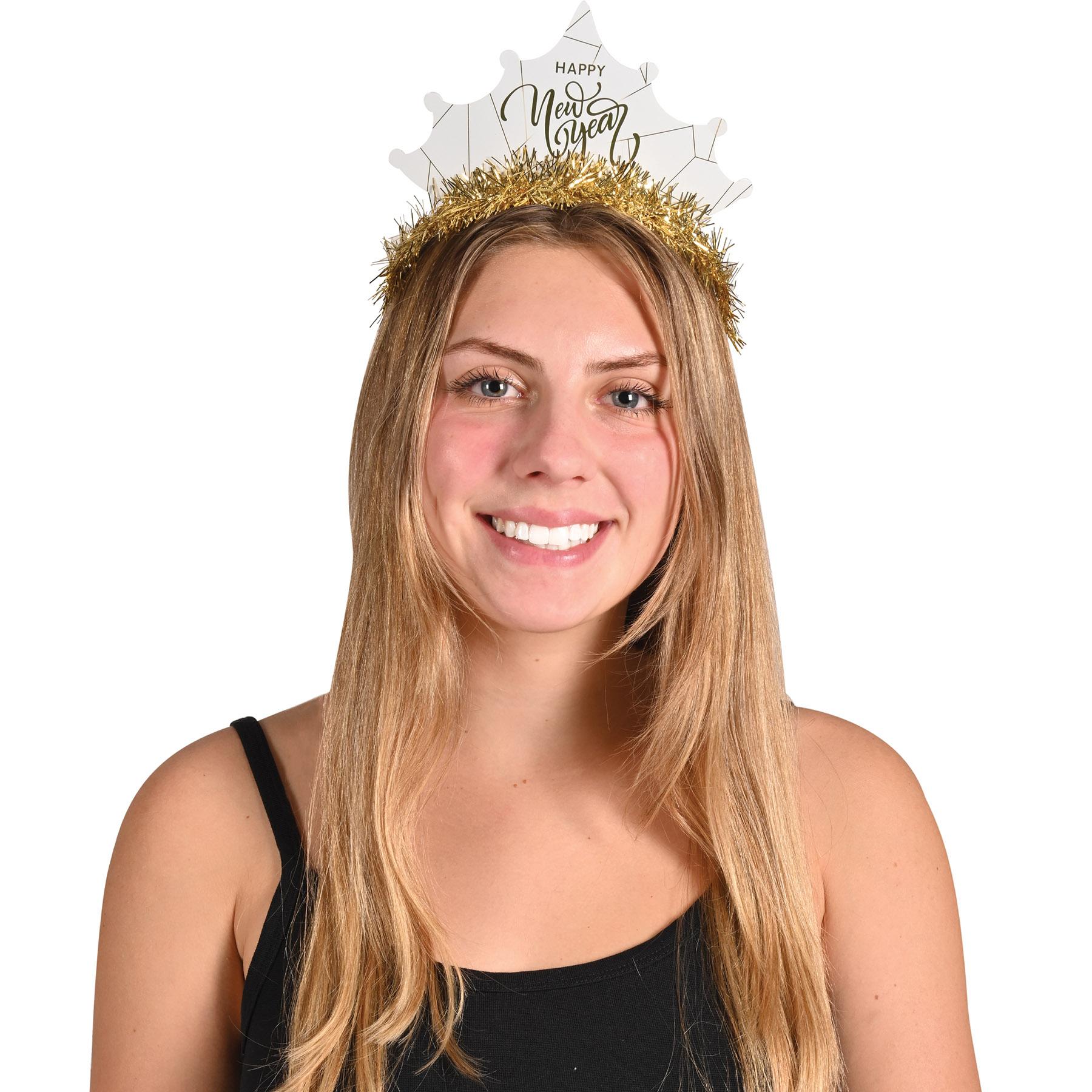 Celebrate New Year’s Eve in style with the Gold New Year Star Party Kit for 50 People from BulkPartySupplies.com! This festive kit includes plastic star toppers with printed foil bands, glittered fringed tiaras, foil horns, and party bead necklaces—everything you need to create a sparkling atmosphere. With quick shipping from our Pennsylvania warehouse, you can prepare for your New Year’s Eve party without any stress. Make your celebration a night to remember with the Gold New Year Star Party Kit!