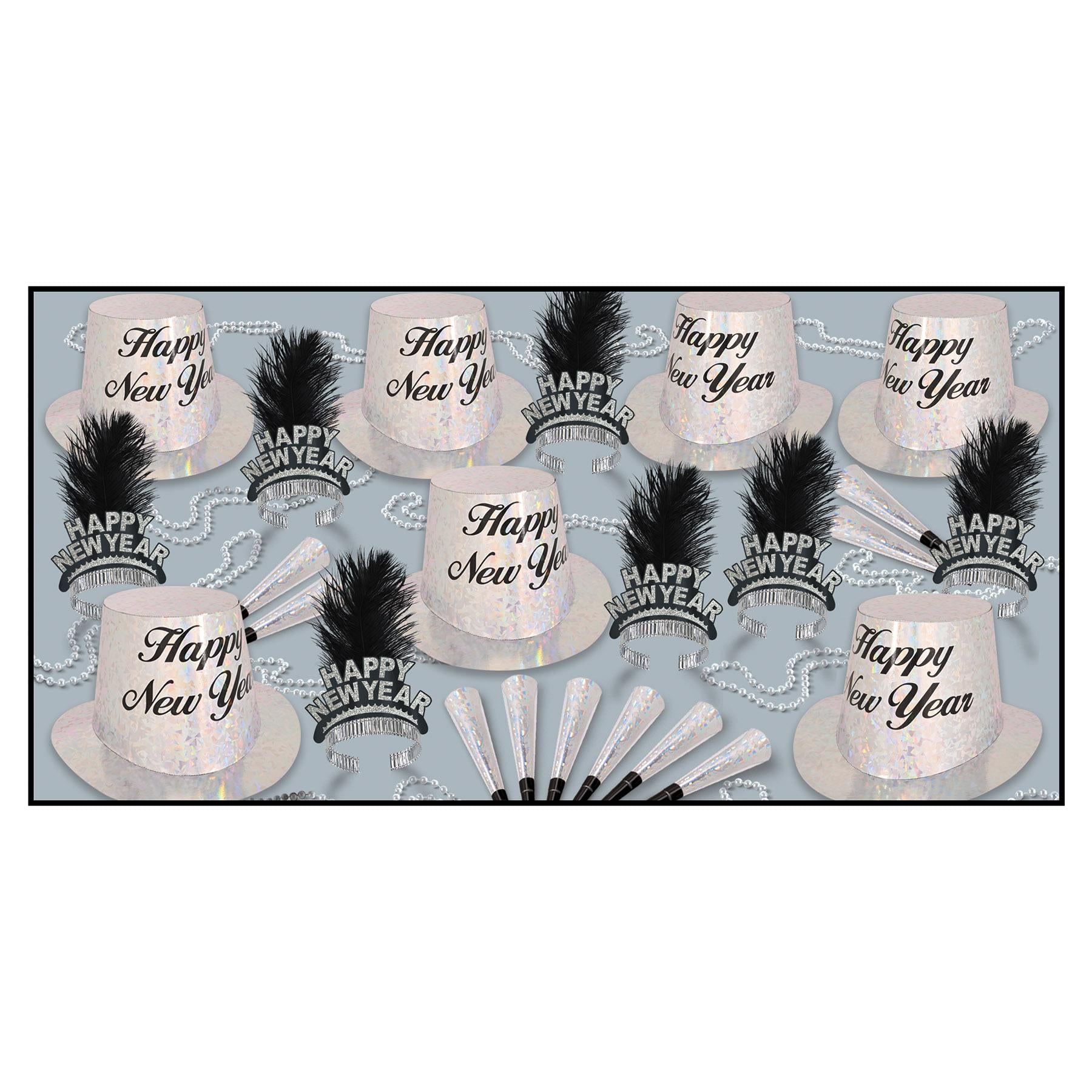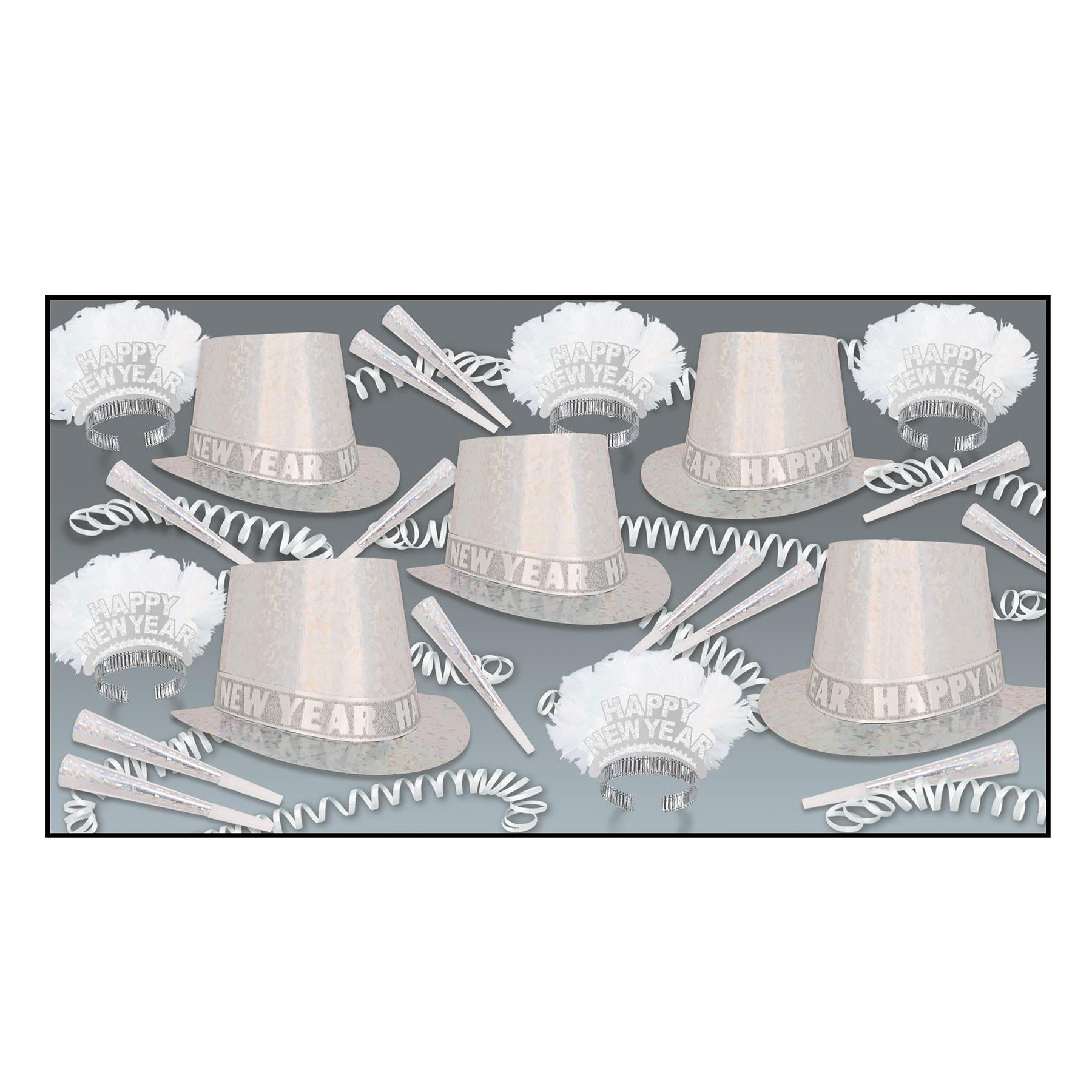 Product Description:Ring in the New Year with the Simply Silver Party Kit for 10 from BulkPartySupplies.com! This party kit includes everything you need for a stylish and fun celebration with 10 guests. The kit features 5 plastic toppers with printed foil bands, 5 glittered fringed tiaras, 10 9-inch foil horns and 5 33-inch party beads to complete the festive look. All items ship from our Pennsylvania warehouse within one business day, ensuring you have everything in time for your celebration. Make this New Year's Eve one to remember with the Simply Silver Party Kit for 10!