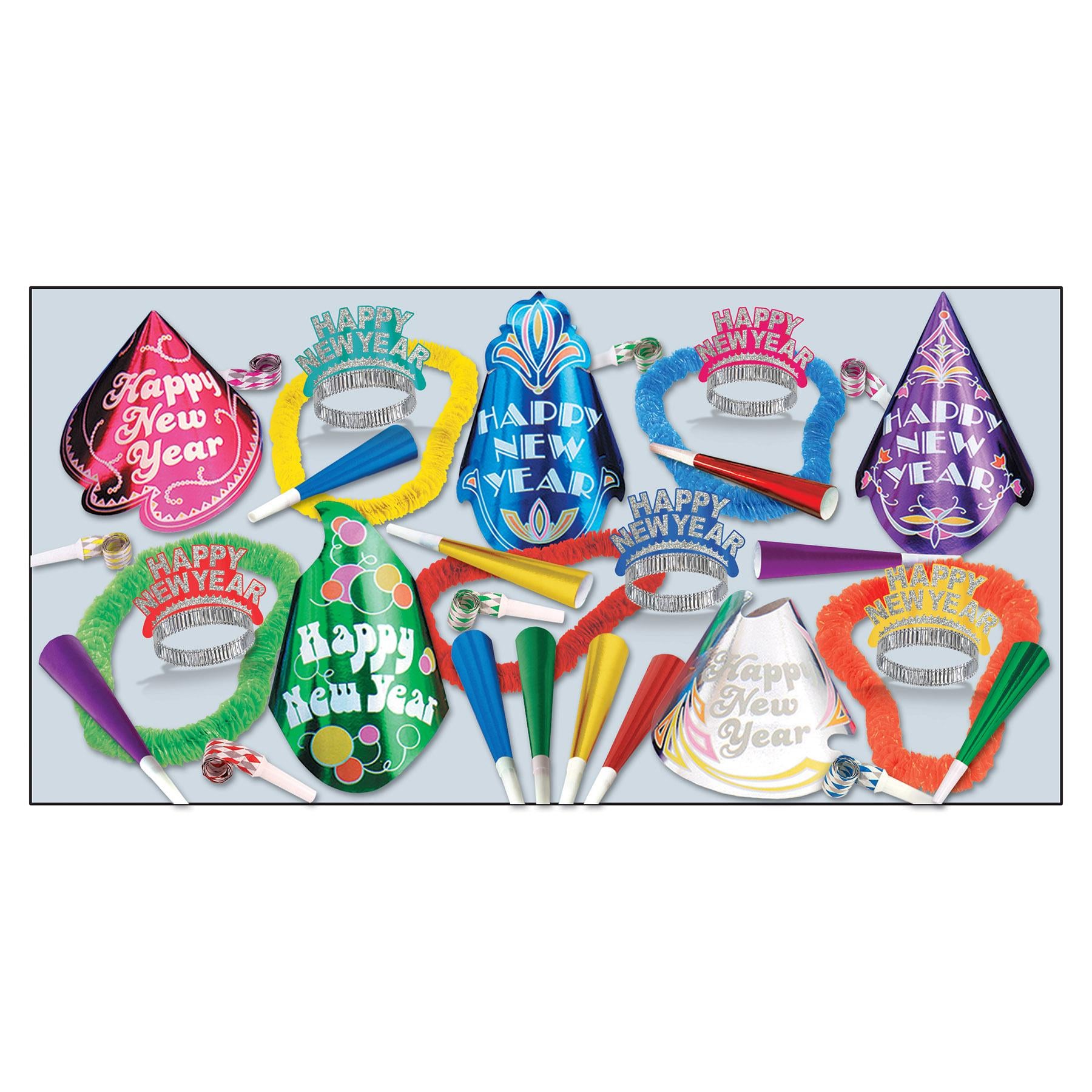 Product Description:Ring in the New Year with the New Yorker New Year's Eve Party Kit for 50 People from BulkPartySupplies.com! This kit has everything you need to throw a fun and festive New Year's Eve party. With printed party hats, tiaras, foil horns, and poly leis, your guests will be ready to celebrate in style. Plus, the kit ships quickly from our Pennsylvania warehouse, ensuring you have your party supplies in time for the big event. Make your New Year's Eve celebration one to remember with the New Yorker New Year's Eve Party Kit for 50 People!