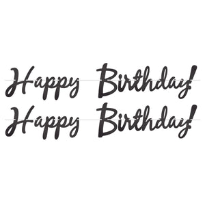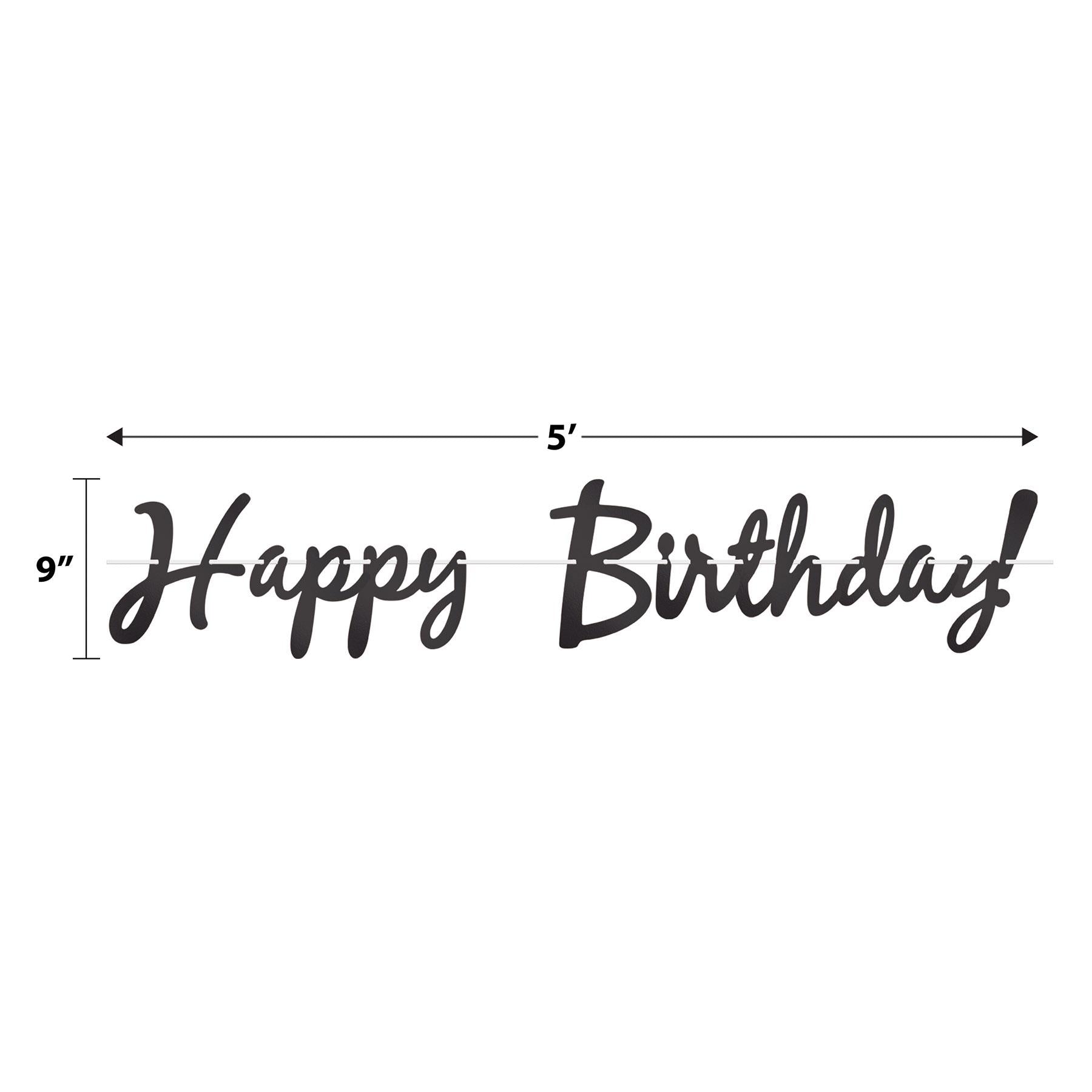 Make your birthday special with this black Foil Happy Birthday Streamer! 9" x 5' size, 1/package, 12 packages per case. Perfect for banners and streamers.