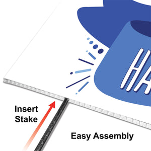 Celebrate Father's Day with our Plastic Jumbo Happy Father's Day Yard Sign! Tri-fold design with 3 metal stakes included. All-weather and 11.5" x 3' 6.75" size. Perfect for Mothers/Fathers Day, Signs, and Plastic Yard Signs. 1/Package, 6 packages per case.
