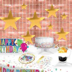 Product Description: The Metallic Square Curtain - Rose Gold (Case of 6) is the perfect addition to any General Occasion party! This package includes 6 curtains that each measure 6.5 feet x 3 feet 2.25 inches and feature a luxurious rose gold color. Each package also includes double-stick tape for easy hanging. With 6 packages per case, you can buy in bulk and save. Add a touch of glamour to your party with the Metallic Square Curtain - Rose Gold (Case of 6) from BulkPartySupplies.com. Ships from Pennsylvania warehouse within one business day.