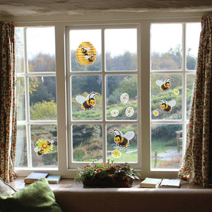 Welcome Spring and Summer with Our Bumblebee Clings! These fun window clings are perfect for adding a decorative touch to any window in your home. The 12" x 17" sheets come in cases of 12 and include assorted bumblebee designs. They are easy to use and will not damage your windows. The adhesive clings can be removed and reused for years to come. With UPC 034689544272, you can be sure you are receiving the highest quality product. Each order comes with twelve sheets, twelve packages per case. These clings are perfect for adding a touch of whimsy to any window in your home. Bring the warmth of the season into your home with Our Bumblebee Clings today!