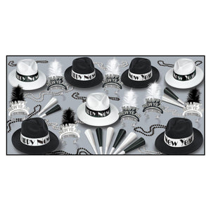 Ring in the New Year with the Chicago Swing New Year's Eve Party Kit for 50 People from BulkPartySupplies.com! This kit has everything you need to host a memorable celebration, including velour fedoras, glittered plumed tiaras, foil horns, and party bead necklaces. With fast shipping from our Pennsylvania warehouse, your party supplies will arrive in time for the festivities. Whether you're planning a small or large gathering, this kit ensures your New Year's Eve party starts off right!