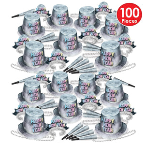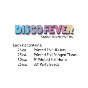 Get ready to celebrate in style with the Disco Fever New Year's Eve Party Kit for 50 People from BulkPartySupplies.com! This kit includes everything you need to throw a festive and unforgettable New Year's Eve party, featuring printed foil hi-hats, fringed tiaras, foil horns, and party bead necklaces. With fast shipping from our Pennsylvania warehouse, you can have your supplies in time to kick off the New Year in style. Make your celebration one to remember with the Disco Fever Party Kit!
