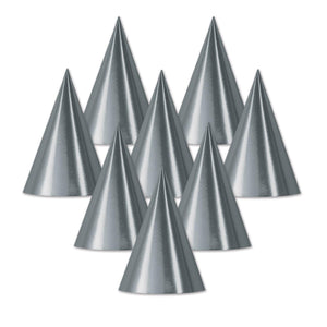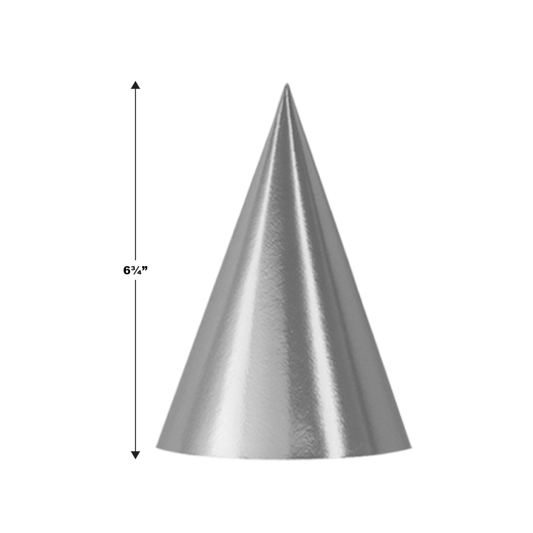 Product Description: This Foil Cone Hat is the perfect addition to any birthday celebration. This silver hat is designed to fit a medium head size, and is 6.75" in size. It comes with an elastic attached for a snug and comfortable fit. The Foil Cone Hat will bring a touch of sparkle to any event, and is sure to be a hit. The hat is a great choice for any age and is sure to be remembered by all. It's lightweight and easy to store, making it a great pick for any party. Plus, it ships from our Pennsylvania warehouse within one business day, so you can rest assured your party planning will stay on track. Get ready for a night of fun with the Foil Cone Hat from BulkPartySupplies.com.