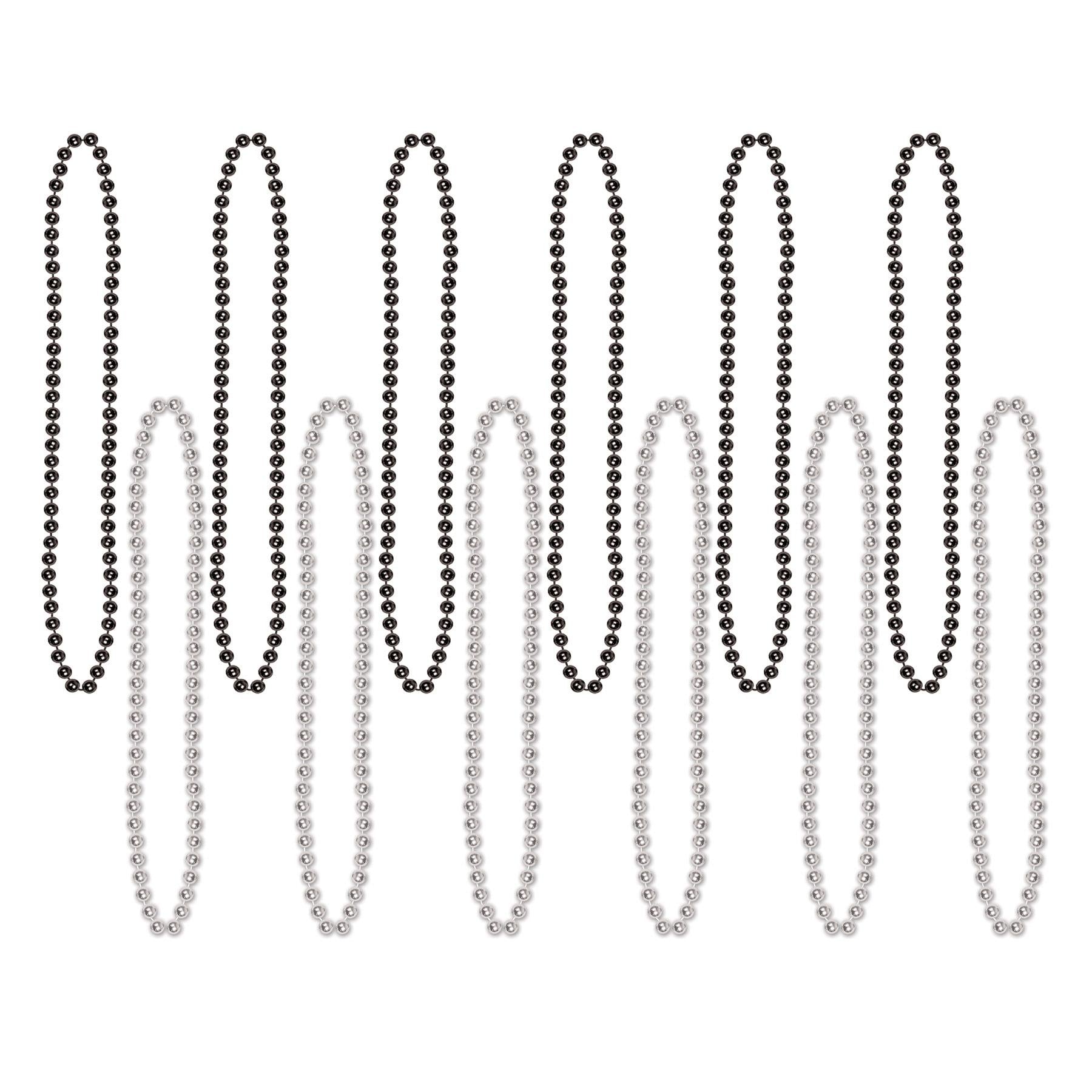 Product Description: The Party Bead Necklaces - Small Round are a perfect addition to any general occasion party. The beads come in a package of 12 and measure 7mm x 33" in size. The beads are black and silver for a great look. They are perfect for making beaded necklaces or to use as decorations for any event. The Party Bead Necklaces - Small Round will ship from our Pennsylvania warehouse within one business day. Adding these beads to your decorations will make any party more festive and fun. With the Party Bead Necklaces - Small Round, you can create a unique look that will make your event memorable. BulkPartySupplies.com has all the decorations and supplies you need to make your party a success.