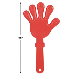 Our Giant Hand Clapper is the perfect way to show your school spirit! This red clapper measures 15" and is sure to make some noise! It's great for noisemakers, horns, and more. The perfect addition to any party, game, or event to make your school spirit stand out! Each case contains 12 Giant Hand Clappers with a UPC of 034689131380. With our Giant Hand Clapper, show your school spirit and make some noise! It's perfect for any school gathering, pep rally, or parade and it's sure to be a hit. Make your spirit heard and get our Giant Hand Clapper today!