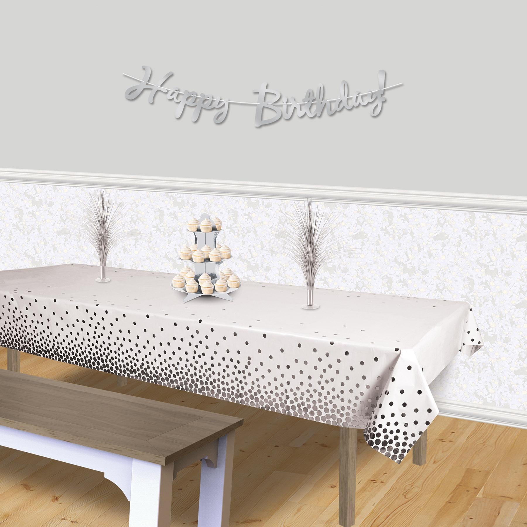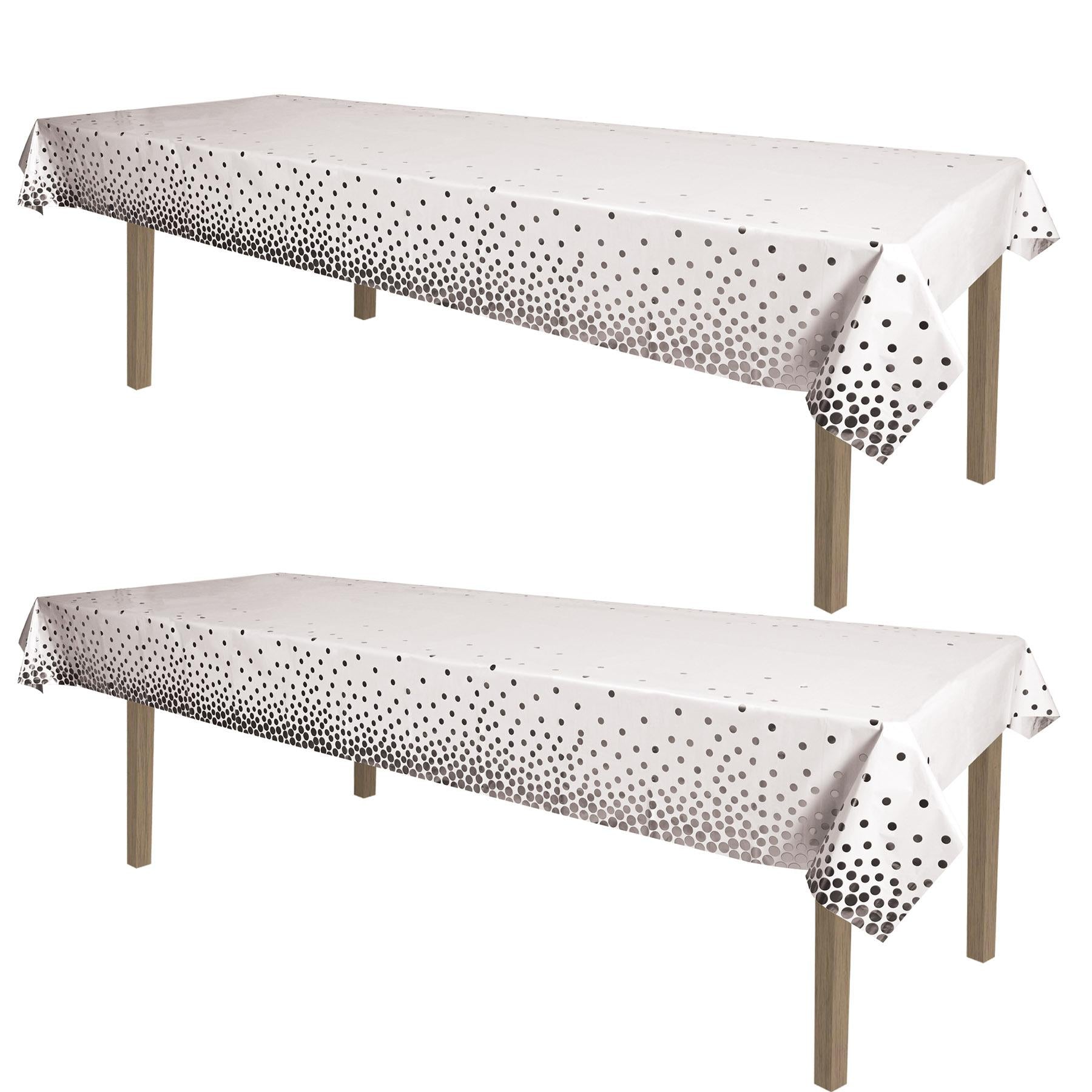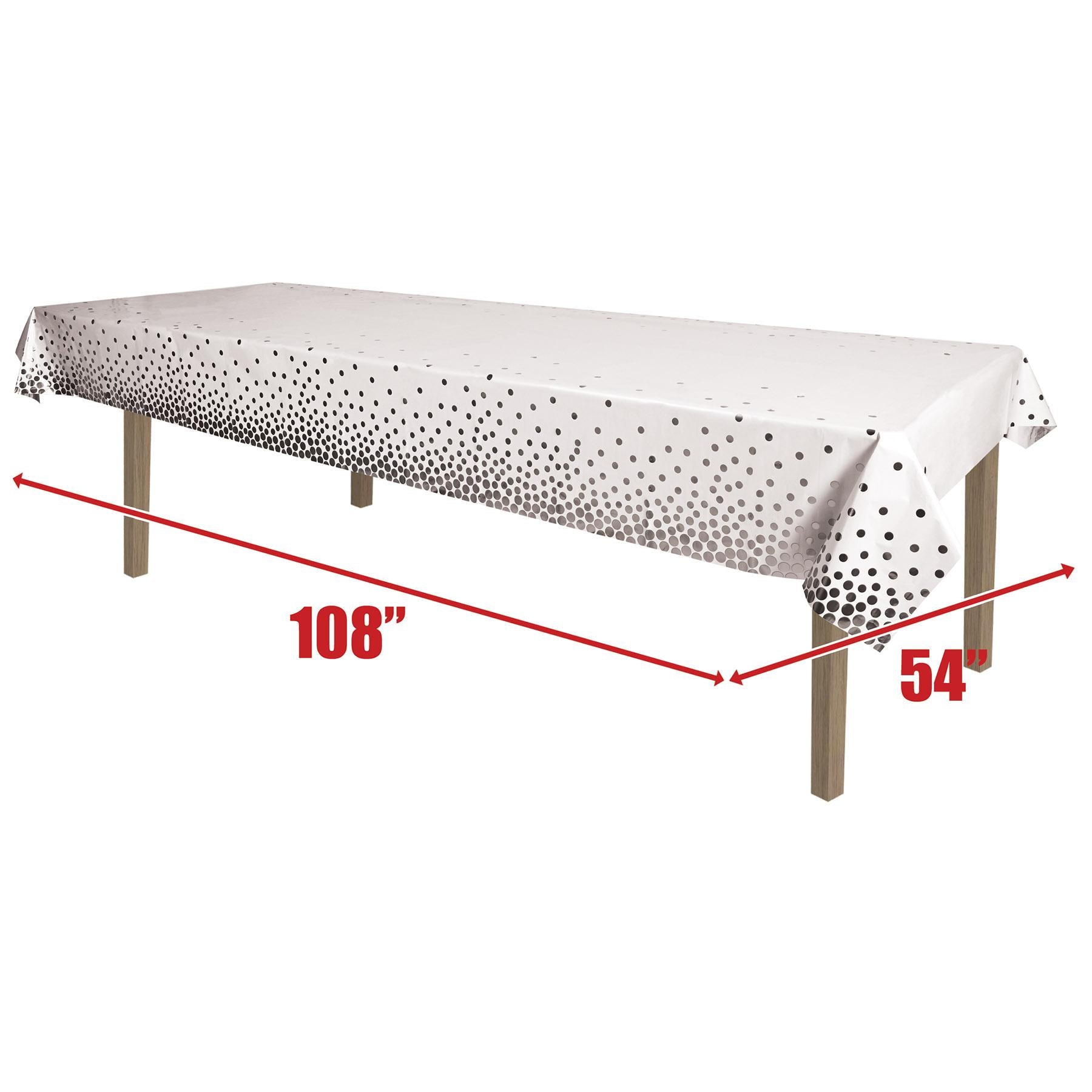 Product Description: This Silver Metallic Polka Dots Tablecover is the perfect addition to any party. The eye-catching silver metallized plastic tablecover measures 54" x 108" and is sure to sparkle and shine. The polka dot design adds a fun and festive touch to any event. This item is part of the General Occasion Themed Party Supplies and is perfect for any occasion. The pack comes with 12 tablecovers so you can cover multiple tables or use them as decorations. This Silver Metallic Polka Dots Tablecover is sure to make your event one to remember.