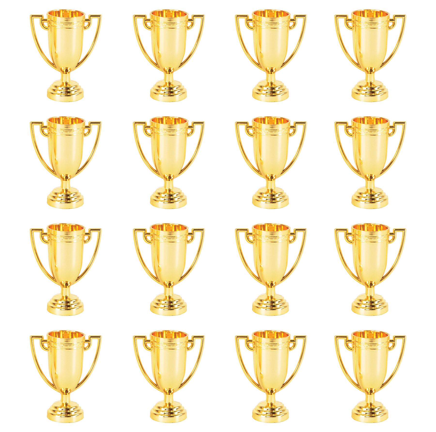 Details: Give each member of the winning team one of these plastic trophies to commemorate their hard work and excellence! 2.75 inch. gold; (8/Pkg); You get 12 packages in each full case you buy.