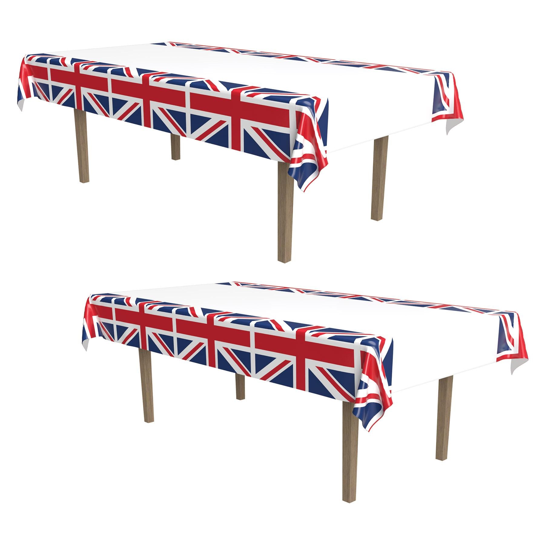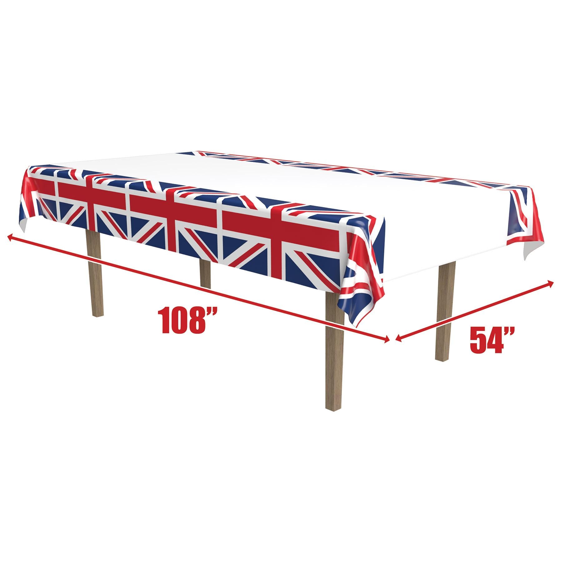 Details: Celebrate your love for the British flag and all things British by decorating your tables with this Union Jack Tablecover! 54 inch x 108 inch. Plastic.; You get a bulk pack of 12 in each full case you buy.