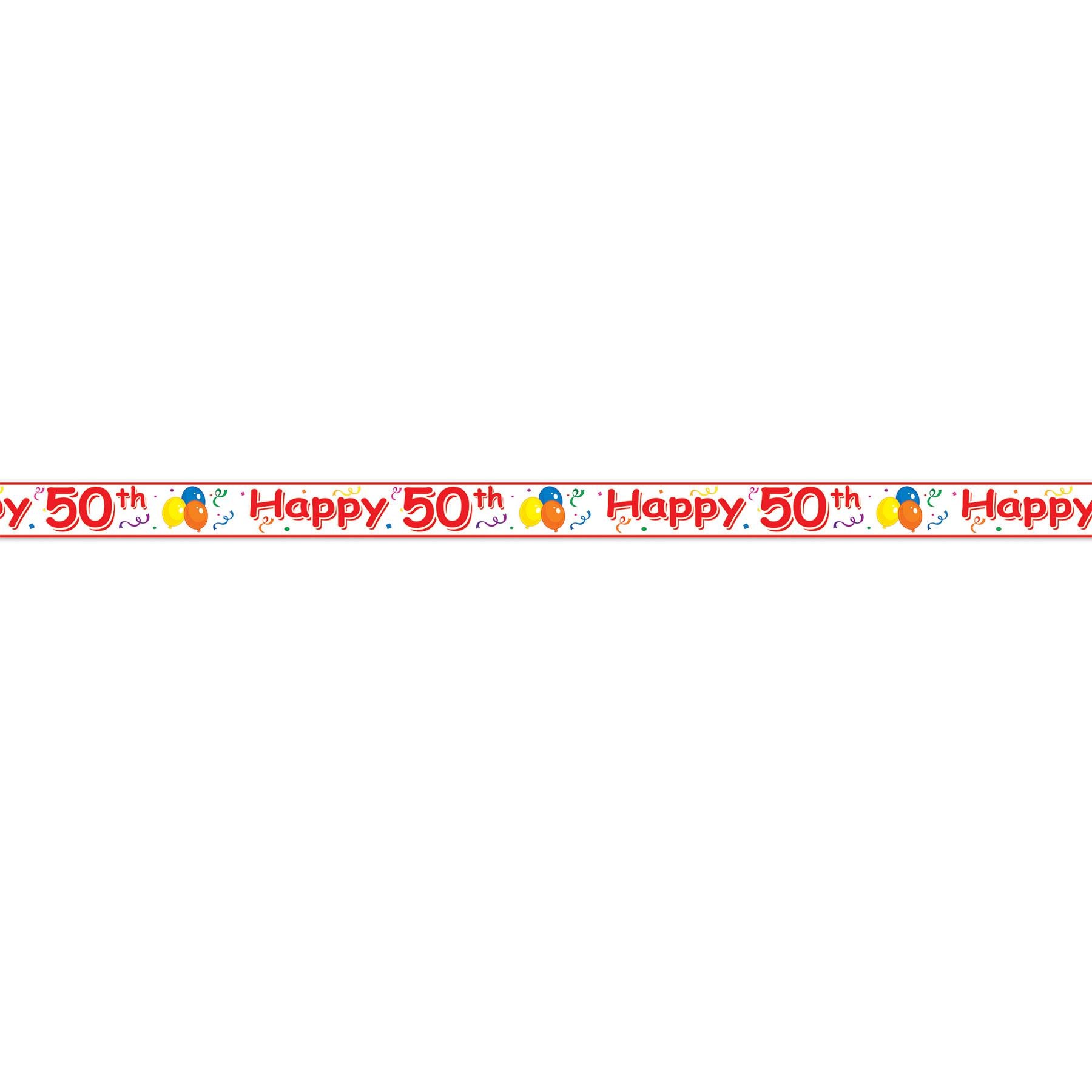 Product Description: Celebrate a special 50th birthday in style with this Foil Happy 50th Birthday Streamer from BulkPartySupplies.com! This streamer is 7.75 inches x 5 feet and comes in a case of 12 packages. Each package contains one streamer, making it easy to decorate large spaces or multiple rooms. The foil accents make this streamer a great addition to any birthday party and the Birthday-Age Specific keyword ensures you get the perfect decoration for the occasion. Plus, this product ships from Pennsylvania warehouse within one business day! With Our Foil Happy 50th Birthday Streamer, you can create a festive atmosphere for the special day.