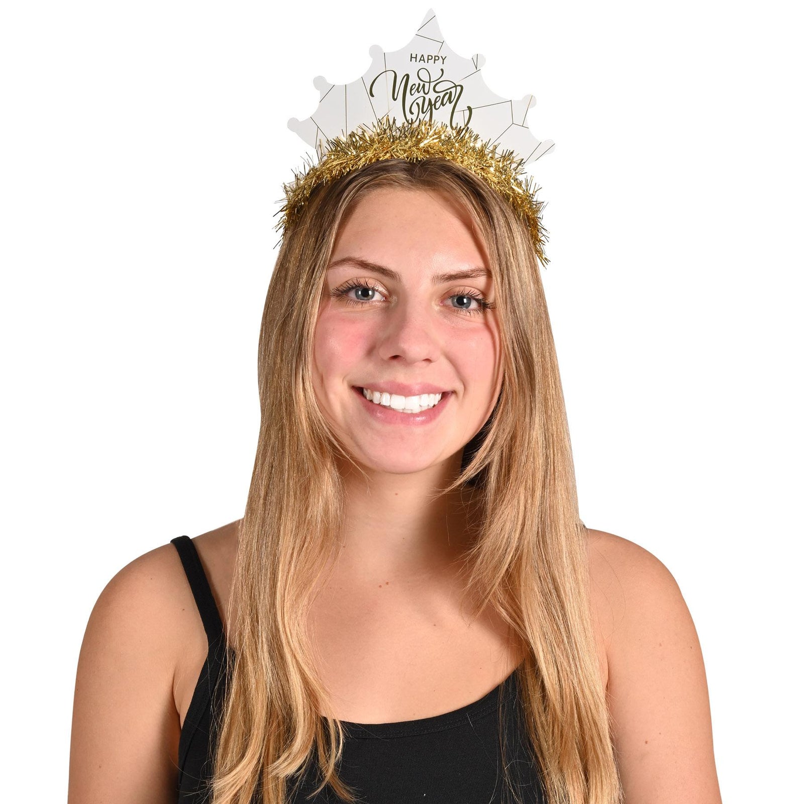 Product Description: Welcome the New Year with style and sparkle with the New Year Tymes Tiara from BulkPartySupplies.com! This gorgeous hair accessory is the perfect way to add a touch of glamour to any New Year's Eve celebration and will make your guests feel like royalty. The tiara is made of printed SBS and comes in a package that measures 7x6x1.75 inches. You get one tiara Per Package, and it ships from our Pennsylvania warehouse within one business day. This item is a great selection for New Year's festivities, and is sure to make your party a memorable one. Add a little sparkle and shine to your celebration with the New Year Tymes Tiara from BulkPartySupplies.com!