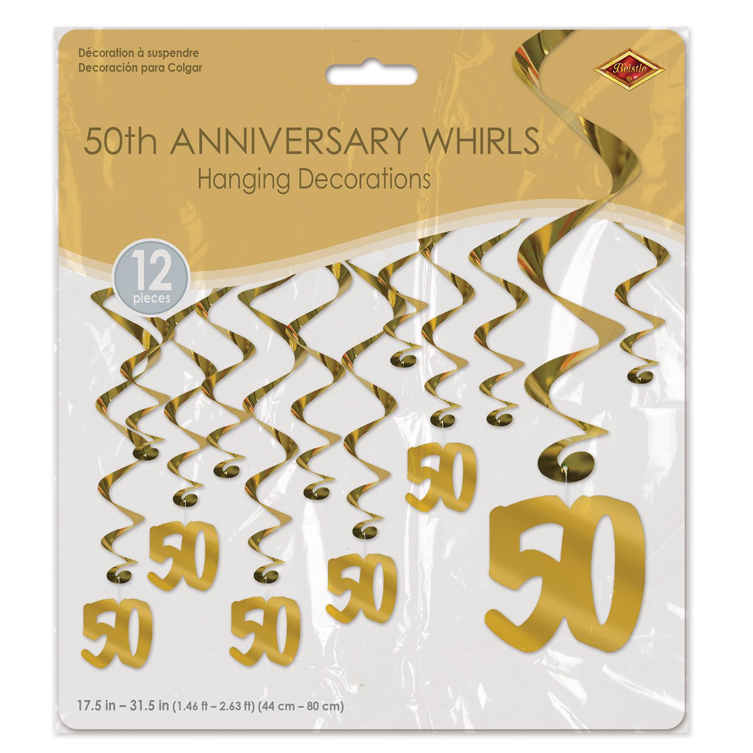 Details: Happy Anniversary! Decorate using a 50th Anniversary Centerpiece to congratulate the couple in 50 years of happiness! Size: 13''. (1/package) . A happy ending is never out of reach with these discount anniversary party supplies!This 50th Anniversary Centerpiece is the perfect way to celebrate a momentous milestone. The centerpiece is 13" tall and features cascades of 50th anniversary-themed decorations and accents. This package includes 1 centerpiece and 12 packages per case. It is sure to be the star of the show at any celebration. The vibrant colors and fun accents are sure to bring a festive atmosphere to any occasion. The included UPC is 034689505167. Add some sparkle to the special day with this 50th Anniversary Centerpiece. It is a great way to commemorate the occasion and will be a treasured keepsake for years to come.