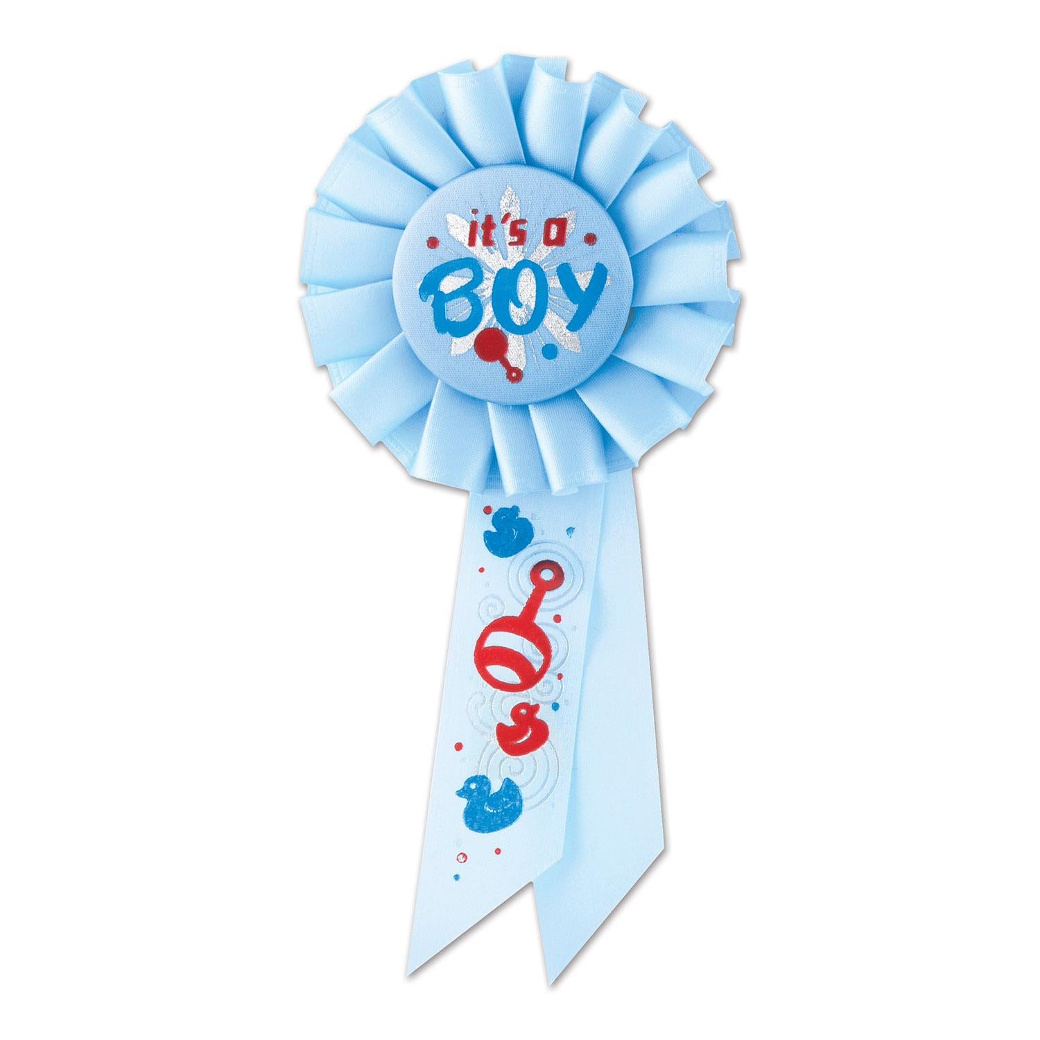 Product Description: The It's A Boy Rosette is the ideal decoration for any Baby Shower. This 3.25" x 6.5" rosette adds a unique touch to any party and is perfect for any Baby Shower. The rosette features ribbons and a DM Rosette to make the perfect decoration for any Baby Shower. With its vibrant colors and detailed design, the It's A Boy Rosette is sure to bring a smile to the face of any expecting mother. Plus, it ships from Pennsylvania warehouse within one business day, so you can be sure you'll have it in time for the Baby Shower. Whether you're looking for decorations or party supplies, the It's A Boy Rosette is the perfect choice for any Baby Shower.
