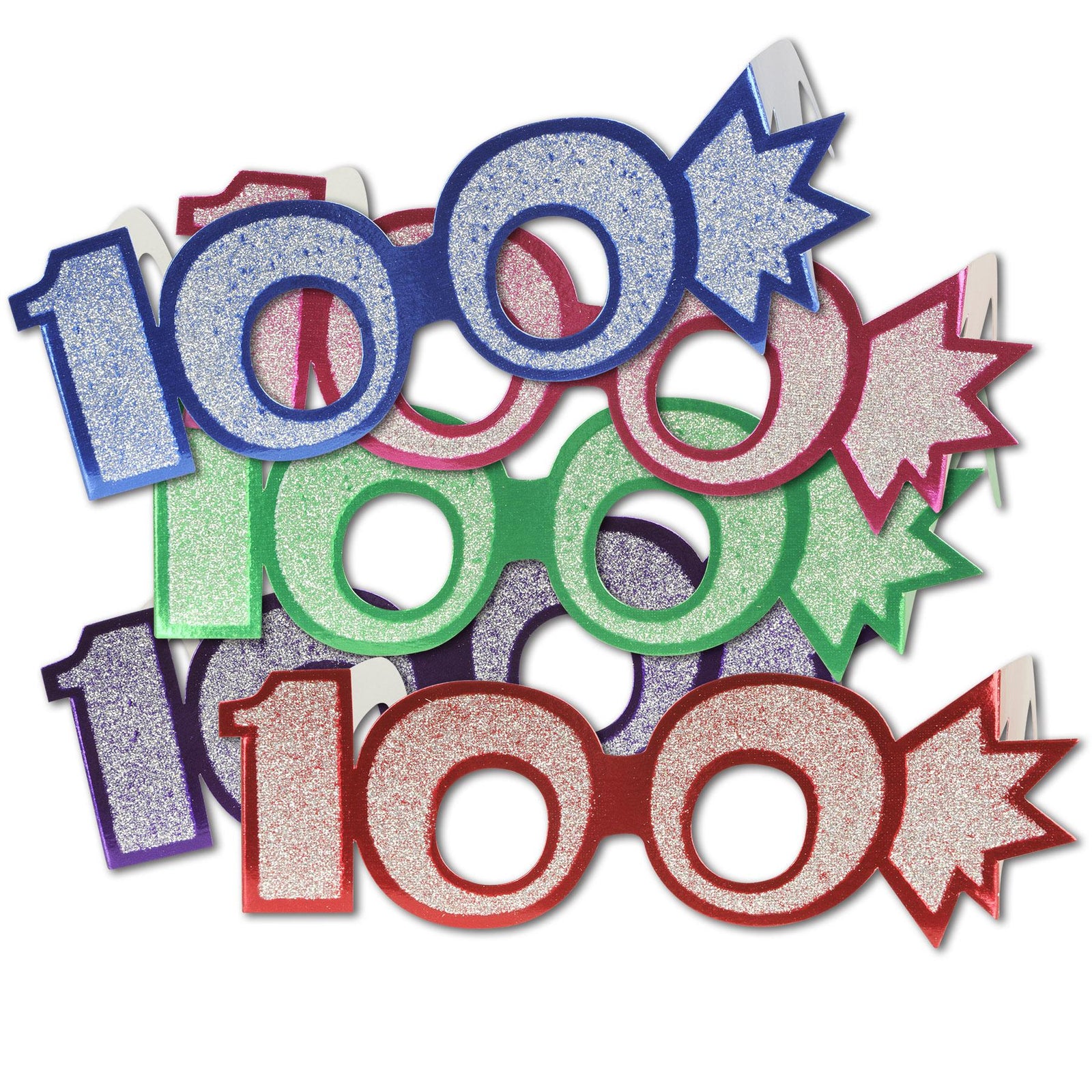 Details: The 100th birthday is a milestone so celebrate accordingly! The eyeglasses fit a full head size are made of glitter-coated cardstock and come in an assortment of colors. In one package you will receive 1 Eyeglass. In a case, you will receive 25 eyeglasses. Celebrate any birthday in style with these 100 glitter foil Eyeglasses! Perfect for any birthday party, these eyeglasses come in assorted colors, one size fits most, and are adorned with plenty of glitter for that extra special sparkle. Great for any age-specific birthday, these eyeglasses make great party favors or can be used for photo booth props. From BulkPartySupplies.com, these eyeglasses come in a case of 25 with a UPC of 034689121367. Add a special touch to any birthday celebration with these glittered foil eyeglasses!