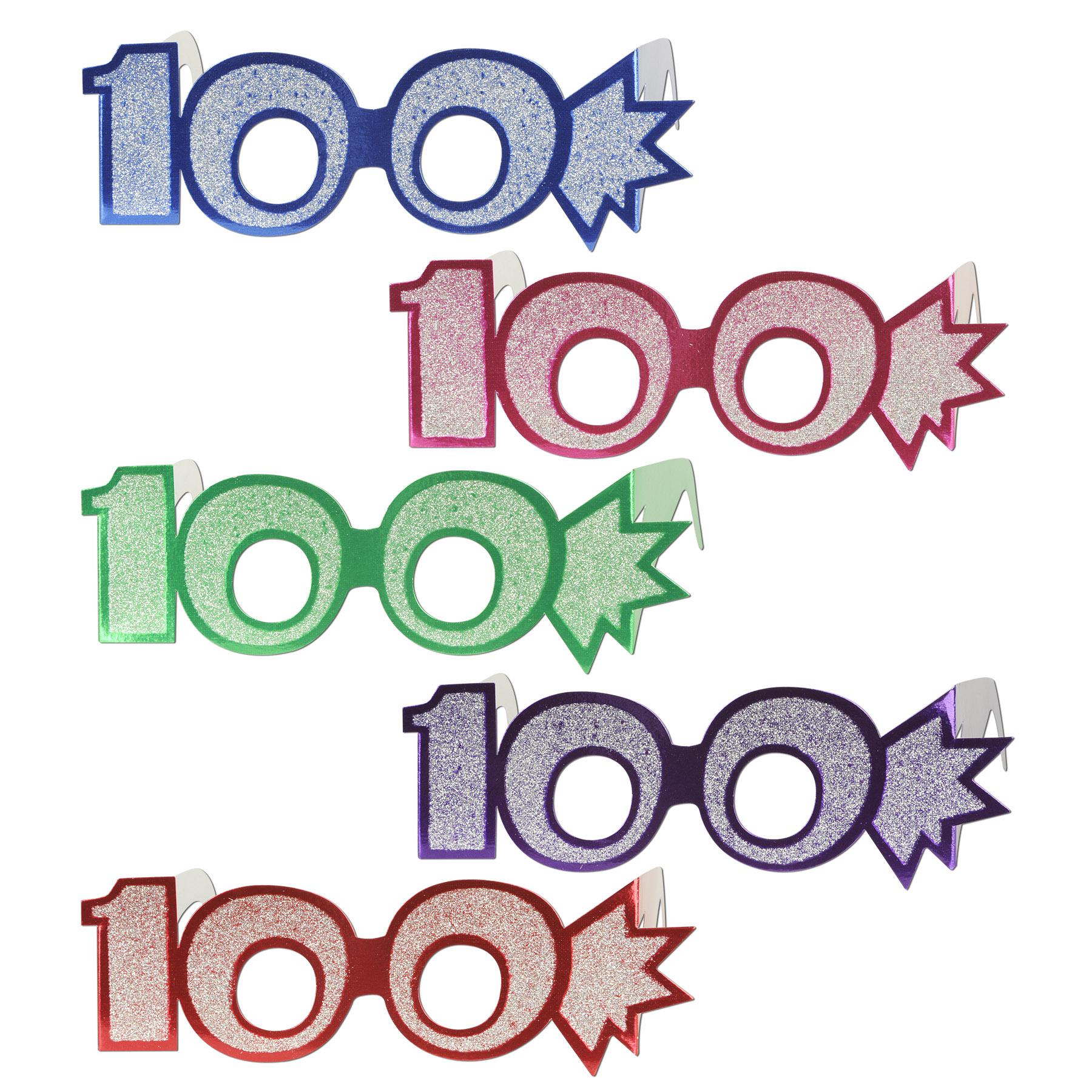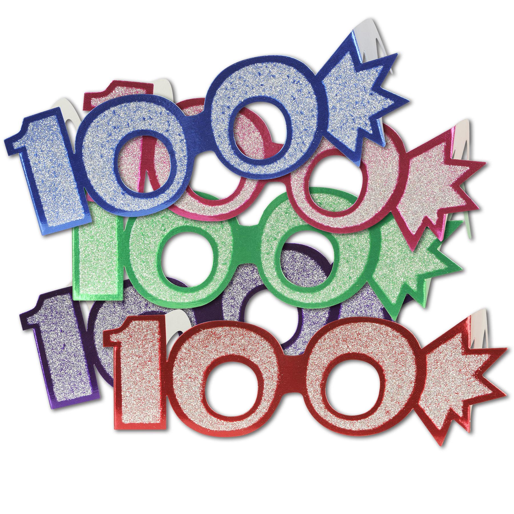 100th Birthday Party Glittered Foil Eyeglasses