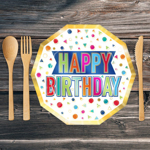Happy Birthday Party Decagon Paper Plates 9 inch
