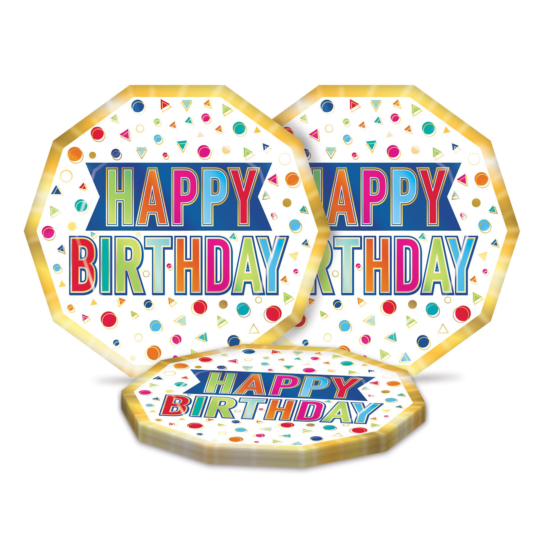 Happy Birthday Party Decagon Paper Plates 9 inch (96/Case)