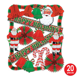 Celebrate the holiday season with our Christmas Decorating Kit! This 20-piece set includes a variety of festive decorations, such as tissue fans, bells, garlands, and more, to transform any space into a holiday wonderland. Perfect for parties and family gatherings, this kit offers an easy setup and tear-down process, so you can quickly create a cheerful and festive environment. Made with quality materials to last through the winter season, this decorating kit is sure to bring the holiday spirit into your home or event. Get yours today and make decorating simple and fun!