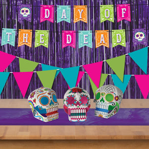 Decorate your Day of the Dead celebration with 3-D Day of the Dead Sugar Skull Centerpieces! Each package contains 3 centerpieces, measuring 5" x 4.5". Assembly required. 12 packages per case.