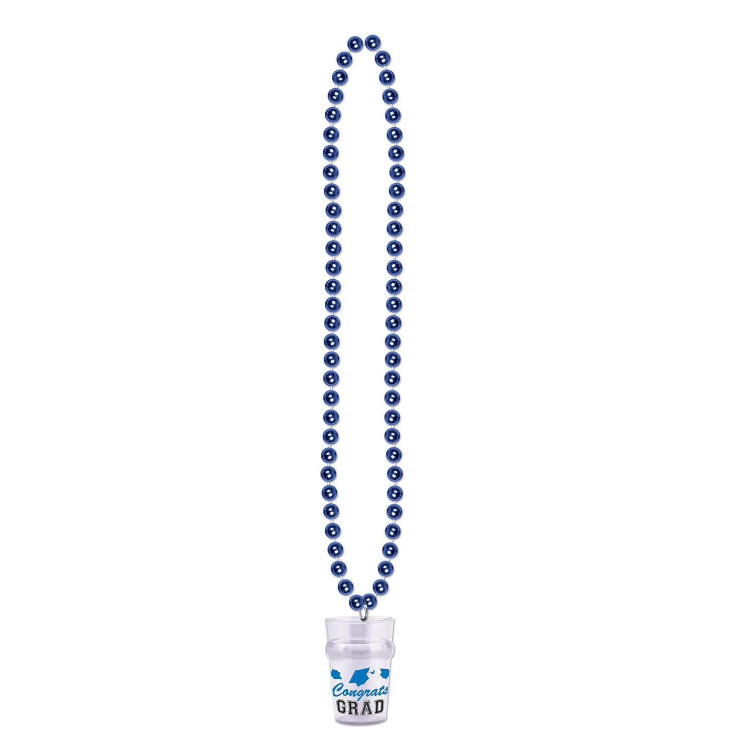 Beistle Bead Necklaces with Grad Graduation Party Glass - blue