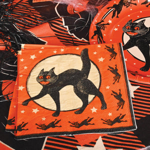 Product Description: These Vintage Halloween Luncheon Napkins are perfect for adding a classic, nostalgic touch to any Halloween-themed party. Featuring the iconic Black Scratch Cat artwork first introduced by our Company in 1928, the napkins come in a classic orange, black and ivory color scheme that will blend well with both modern and vintage decorations. Each package includes sixteen 6.5-inch folded paper napkins, which unfold to 13 inches square. The 2-ply paper napkins are perfect for parties, luncheons, crafting projects or any other Halloween-themed event. Plus, with the item shipping from Pennsylvania warehouse within one business day, you can be sure that you'll have your Vintage Halloween Luncheon Napkins in time for your event.