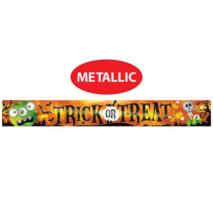 Make your Halloween spooktacular with our Metallic Trick Or Treat Banner! Printed 1-ply PVC, this 7.5" x 5" banner is perfect for decorating your home. Get 12 packages per case and make your Halloween shine!