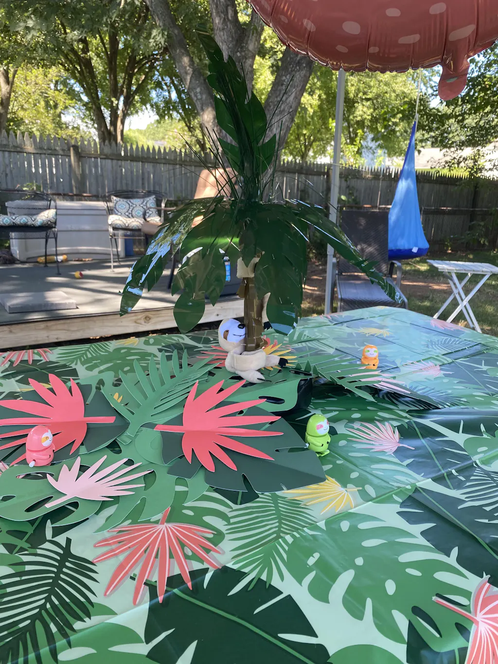 Bring a tropical jungle vibe to your luau or jungle-themed party with this striking centerpiece. Standing 18 inches tall, the cascading palm leaves in green and brown create an exotic focal point that will enhance any table setting. Perfect for adding flair without overwhelming your decor.