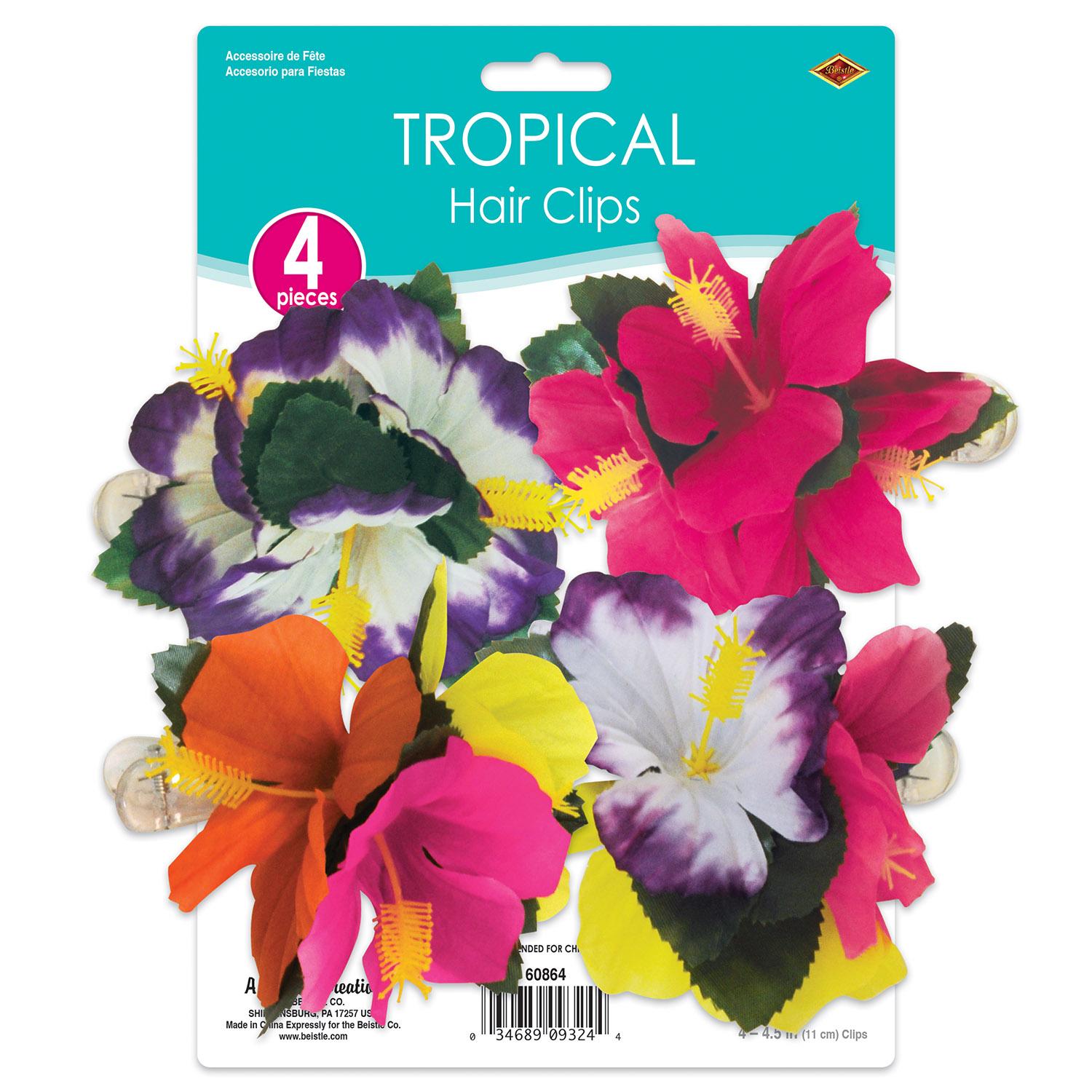 Beistle Luau Party Tropical Hair Clips (4/Pkg)