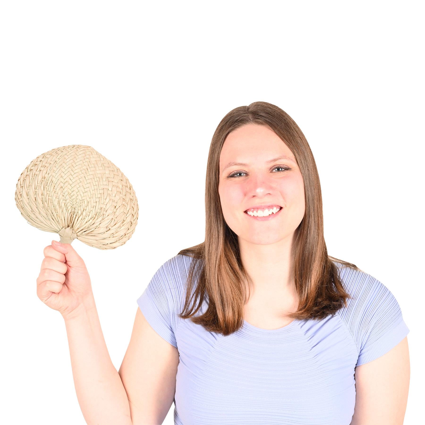 Details: Enjoy a strawberry daiquiri poolside on a warm summer day and make sure you stay cool by fanning yourself with one of these Raffia Fans! No retail packaging. 11 inch wide. ; (2/Poly Bag); You get 6 packages (12 total fans) in each full case you buy.