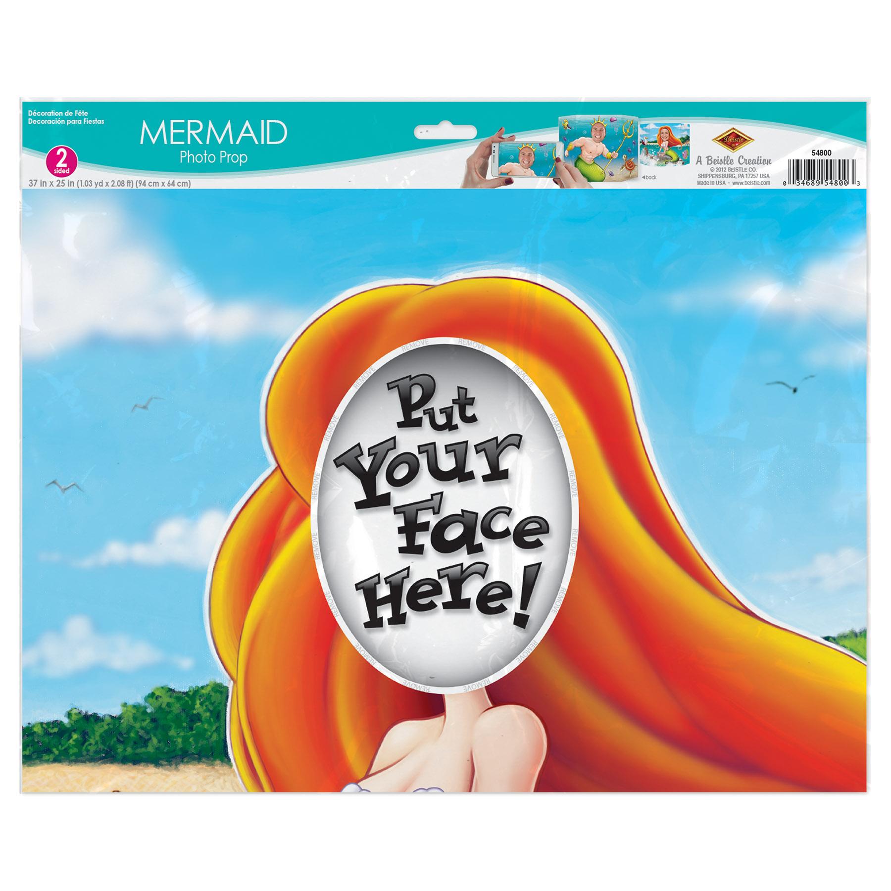 Product Description: This Mermaid Photo Prop is perfect for a mermaid-themed party. The prop is printed on two sides with different designs. One side has a mermaid and the other side has King Neptune. It measures 37"L x 25"W. Each package contains one prop and it ships from our Pennsylvania warehouse within one business day. This item is great for digital photos and photo props. Add a magical touch to your mermaid-themed party with this high-quality Mermaid Photo Prop by BulkPartySupplies.com!