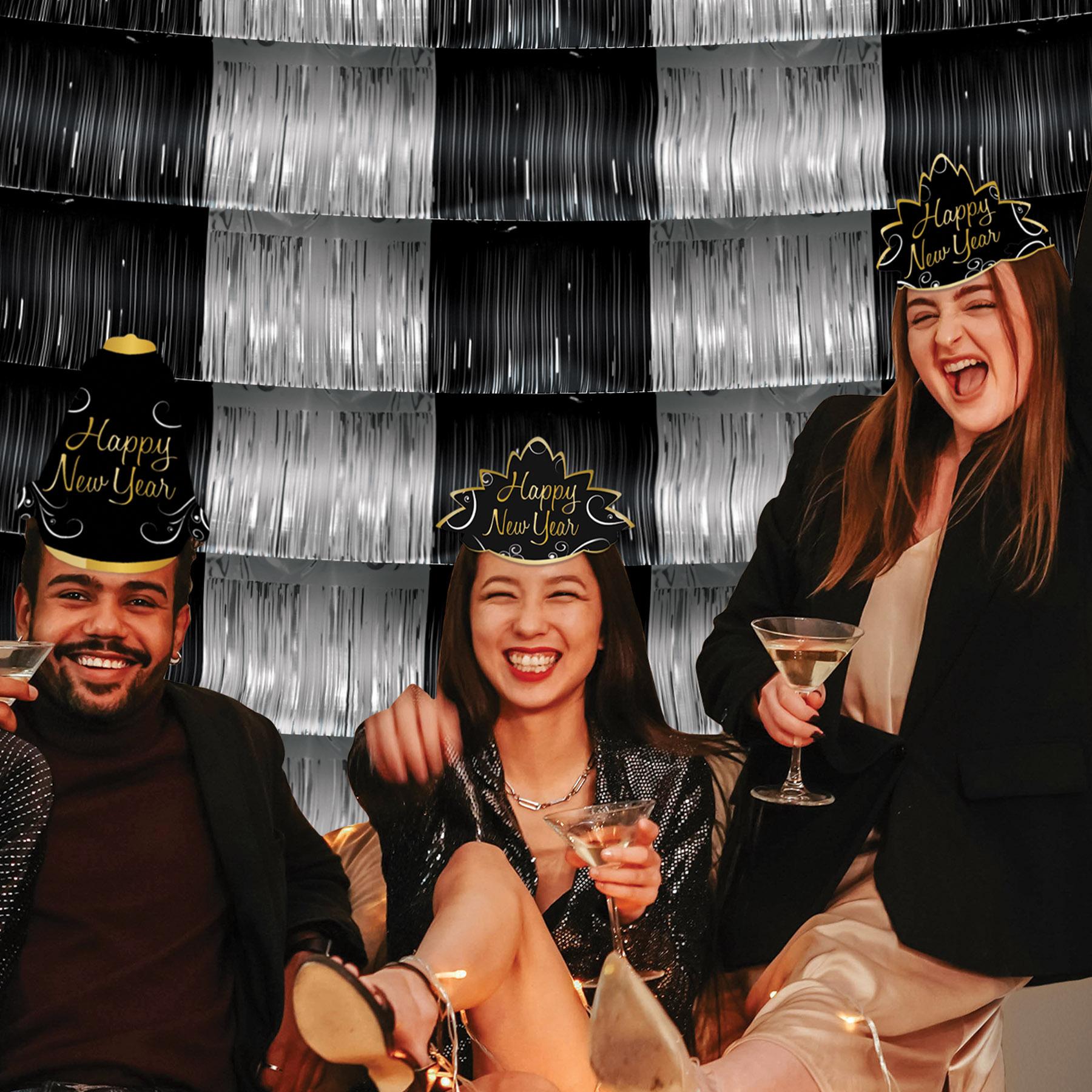 Black and Silver Metallic Party Fringe Garland Backdrop