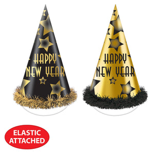 Happy New Year Party Hats Black and Gold (25 per Box)