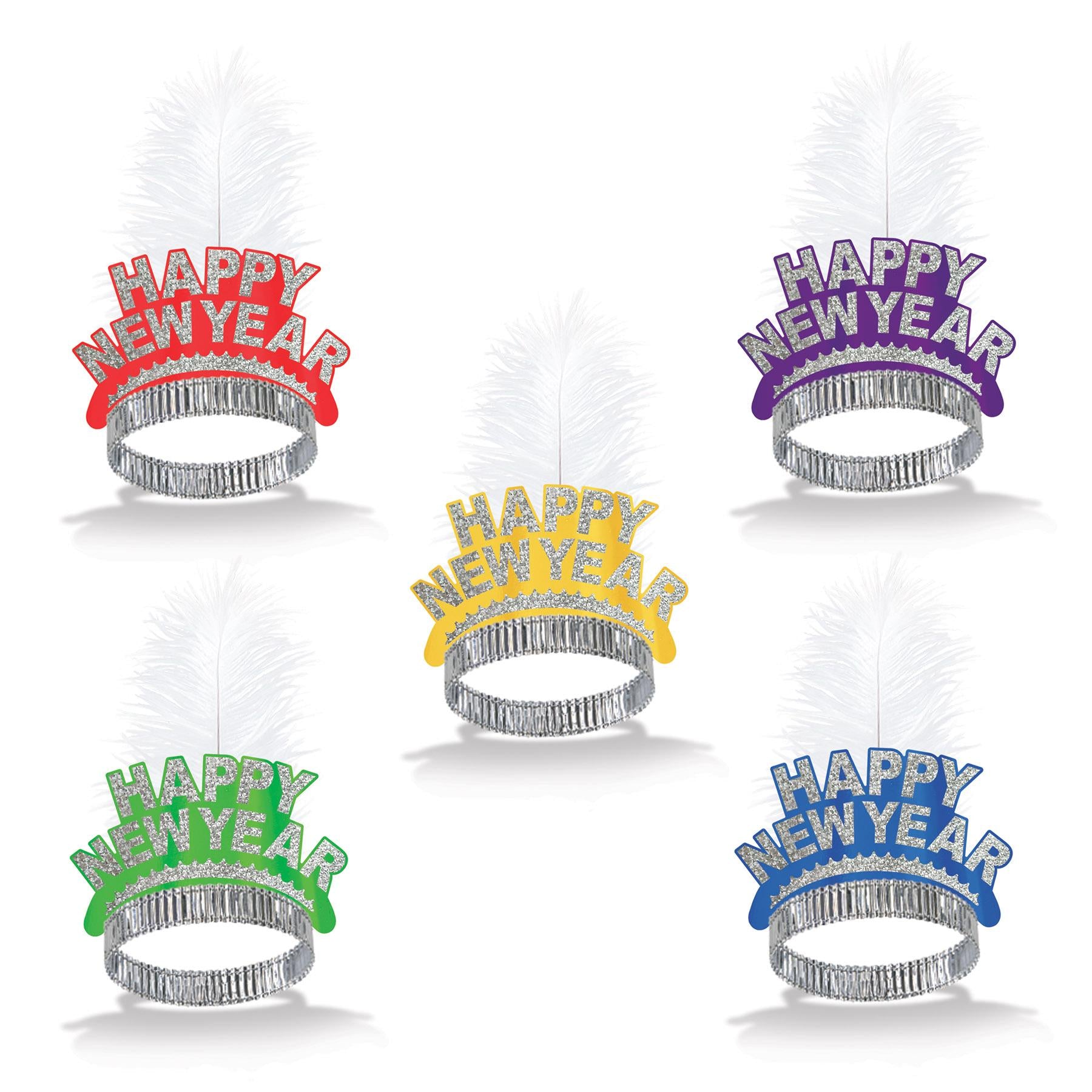Product Description: Welcome the New Year in style with the Happy New Year Bird of Paradise Tiara from BulkPartySupplies.com! This eye-catching tiara features a bright and colorful design with foil, glitter, and feathers. Perfect for New Year's Eve parties, this tiara is a great way to add a touch of class and elegance to your celebration. Assorted colors make this tiara a fun and festive accessory for your special occasion. Choose this tiara for that special someone, or pick one up for yourself and stand out in the crowd. Plus, these tiaras ship from our Pennsylvania warehouse within one business day, so you know you'll get it in time for your event. Make your New Year's Eve party memorable with the Happy New Year Bird of Paradise Tiara from BulkPartySupplies.com!