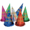 Celebrate the New Year with these Silver & Gold Midnight Burst Cone Hats! Each box contains 25 hats with medium head size and elastic attached. Perfect for any party, these 9" hats are sure to be a hit!