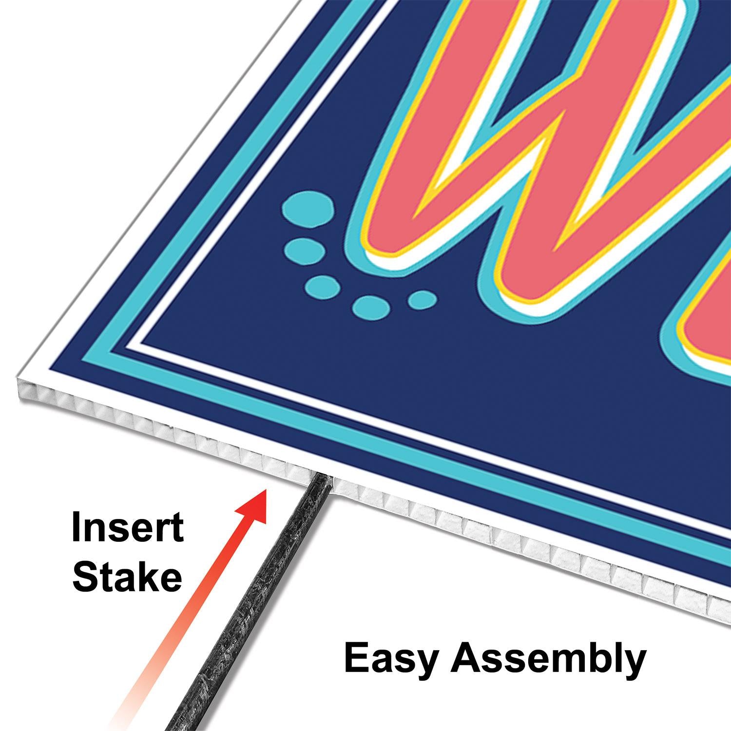 Product Description: Our Plastic 4 Yard Sign is the perfect item for any special occasion or event. This all-weather sign is made of durable plastic and includes a metal H stake for easy assembly. Measuring 18 inches in size, this sign is sure to get your message across. It's ideal for General Occasion, Signs, Plastic Yard Signs, and more. The sign ships from our Pennsylvania warehouse within one business day, so you can get your message out quickly and easily. Add a bit of flair and fun to your next event with our Plastic 4 Yard Sign.