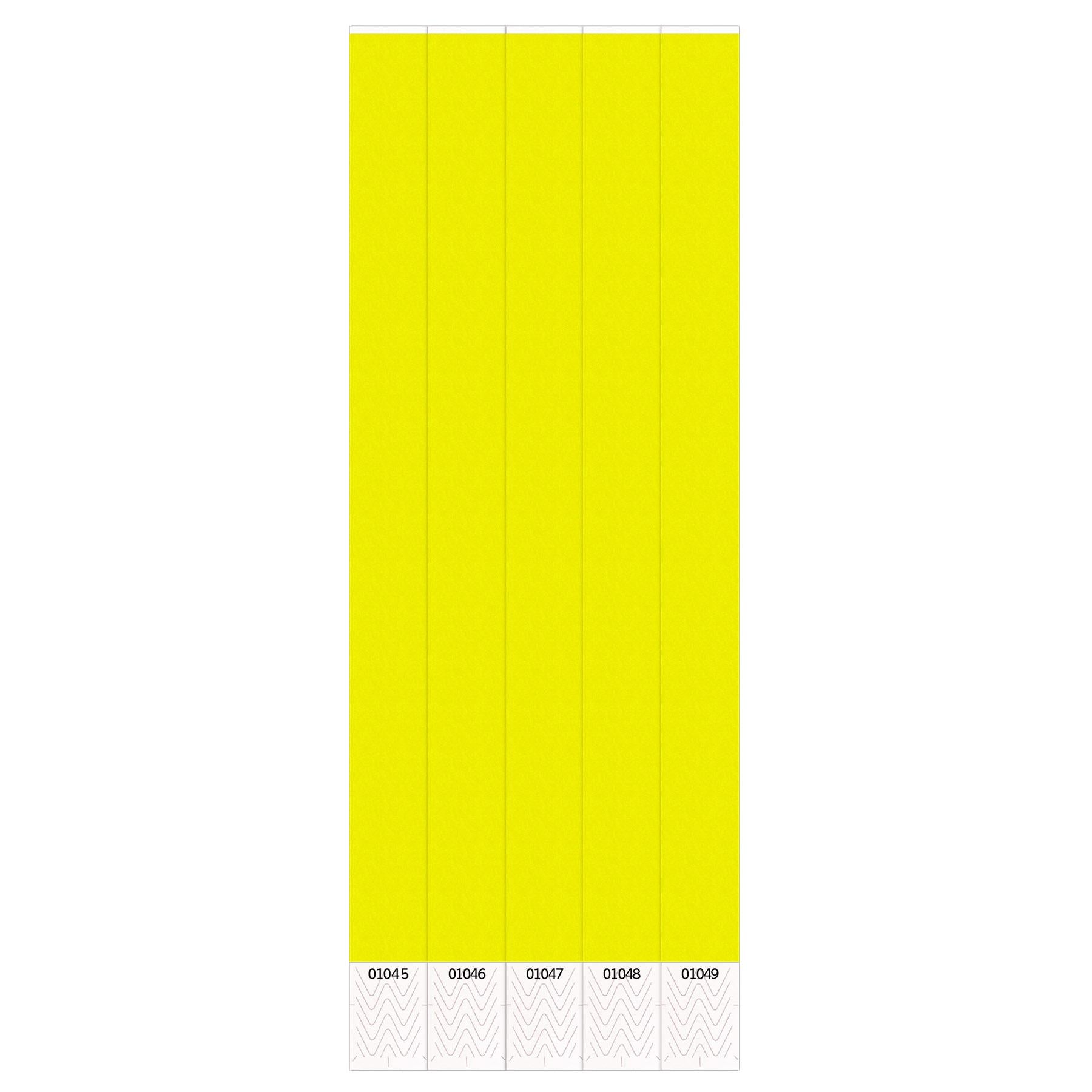 Product Description: Our Solid Color Yellow Wristbands (Case of 600) are a great way to add a touch of fun and excitement to any event. Perfect for general occasions, these novelty items come in a variety of vibrant colors to match any color scheme. Each wristband measures .75 inches by 10 inches and comes in packages of 100. With 6 packages per case, you'll get a total of 600 wristbands. Plus, they ship from the Pennsylvania warehouse within one business day! Add a fun and festive element to any party with these colorful Solid Color Wristbands from BulkPartySupplies.com.