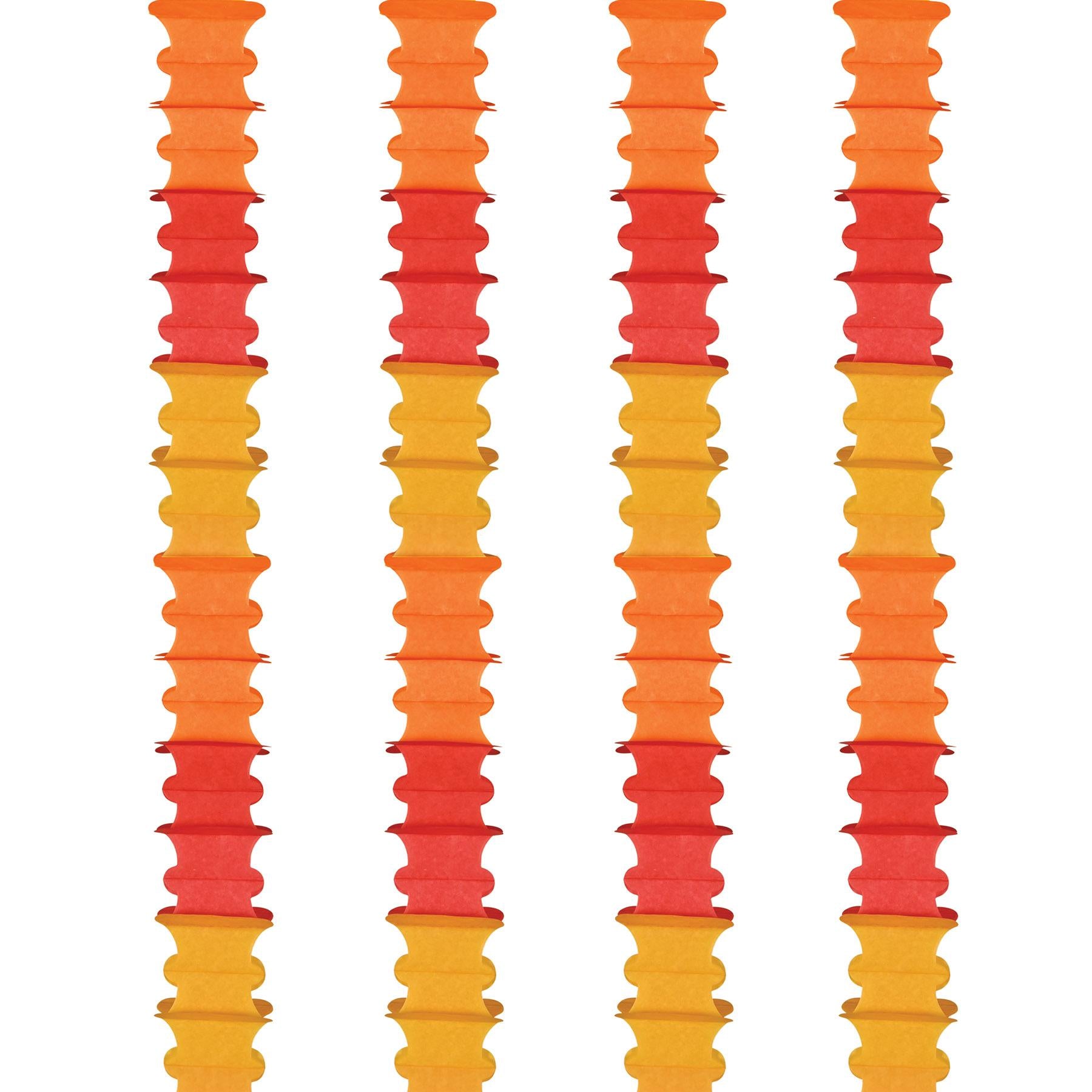 Product Description: Welcome the spirit of Fall and Thanksgiving with Our Arcade Garland. This five and a half foot long garland is decked in an eye-catching combination of golden-yellow, orange, and red, making it perfect for your Fall/Thanksgiving themed party. It's crafted from regular tissue, making it lightweight and easy to hang. When you order Arcade Garland, it will ship out from our Pennsylvania warehouse within one business day, making it easy to get the decorations you need in time for your party. Get ready to wow your guests with the Arcade Garland from BulkPartySupplies.com.