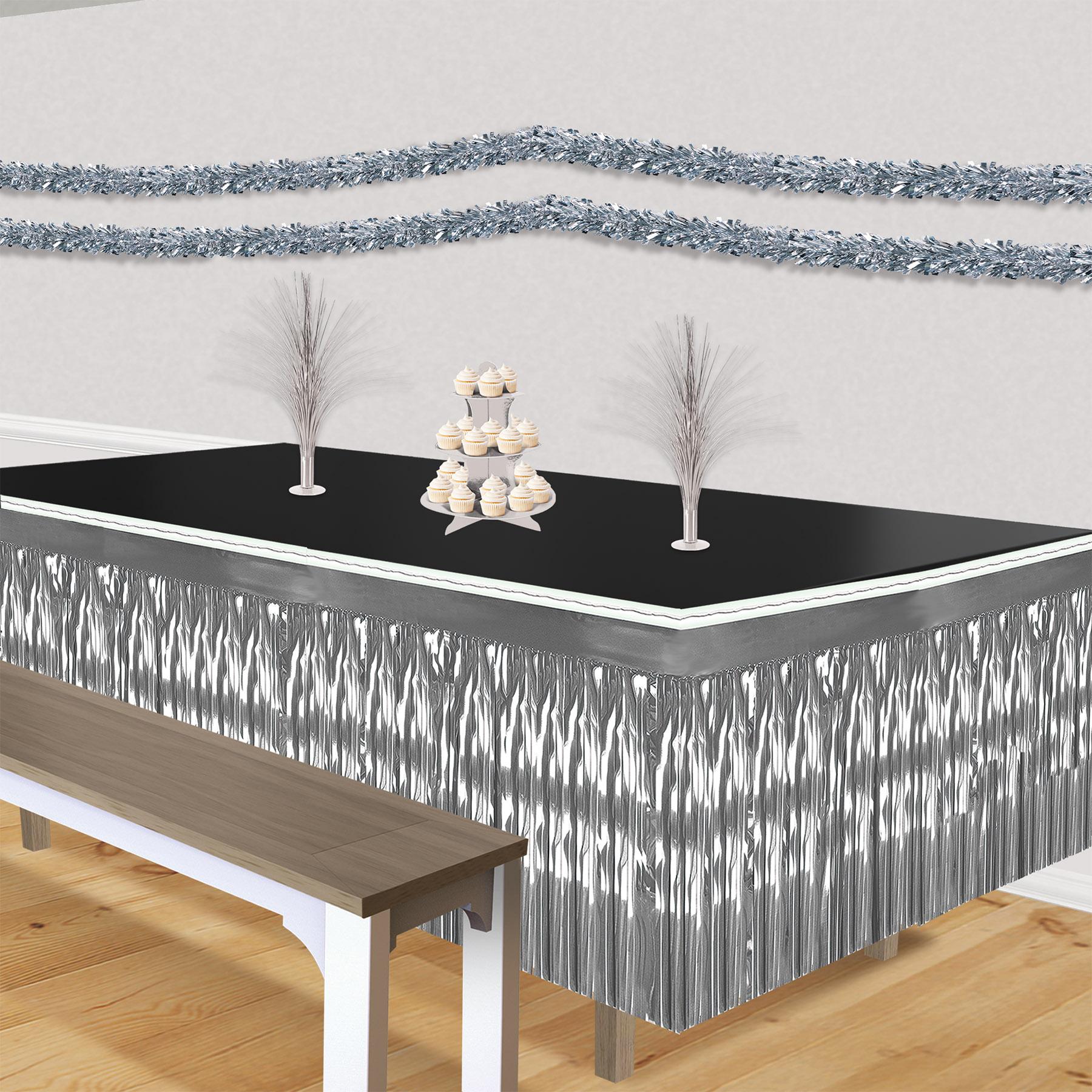 Packaged 1-Ply Metallic Party Table Skirt - silver