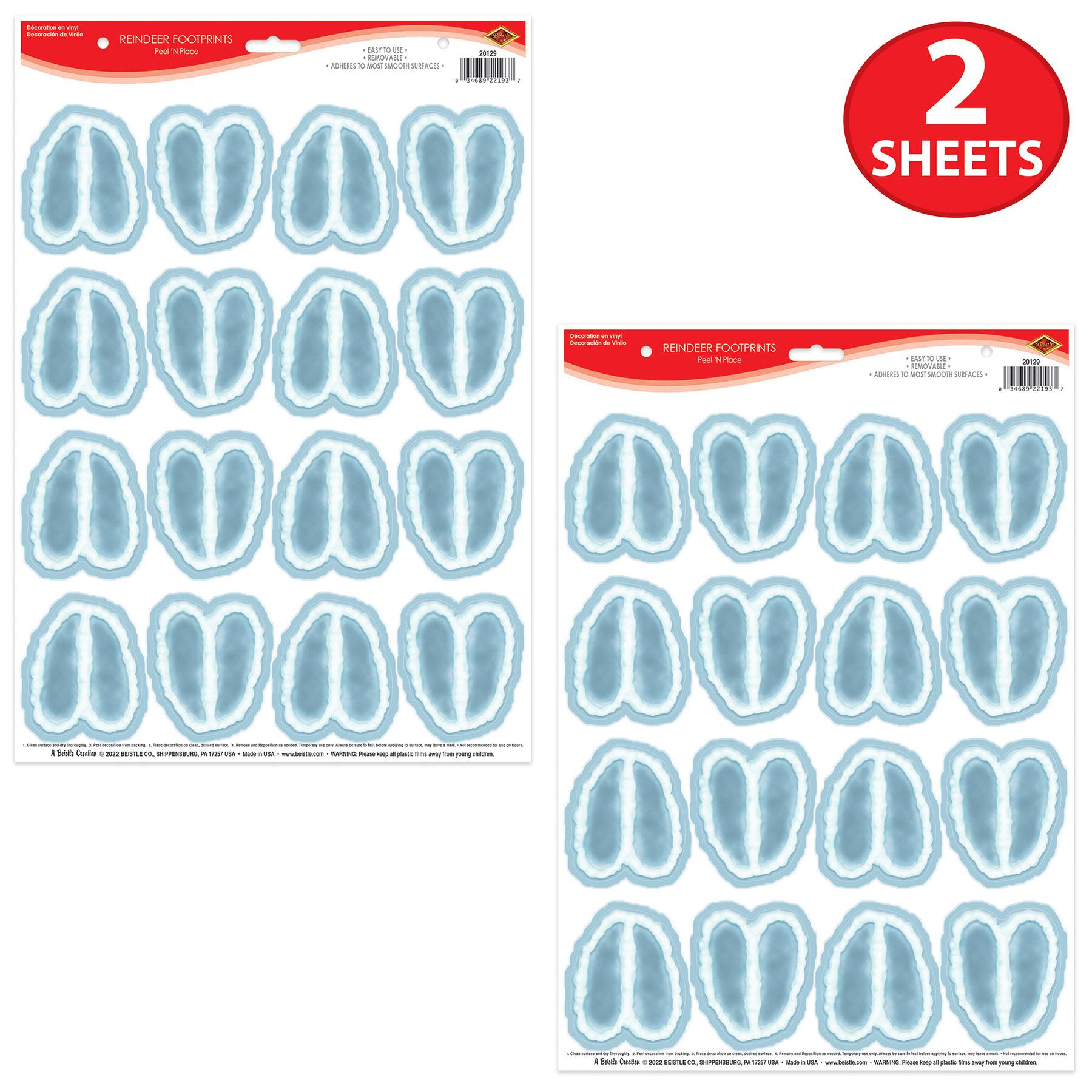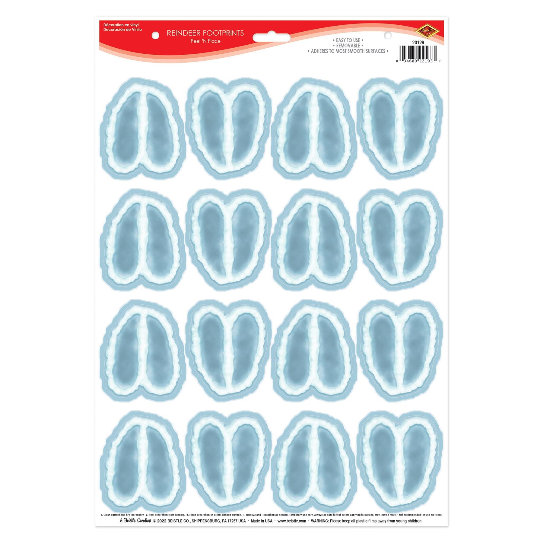 Product Description: Add a touch of holiday magic to your home with our Reindeer Footprints Peel 'N Place Clings! Each 12-inch x 17-inch sheet features reindeer footprint designs, perfect for enhancing your Christmas or winter decor. Simply peel and place these clings on floors, windows, or other smooth surfaces to create a whimsical trail that will delight guests and add a festive touch to any room. With 12 packages per case, you can easily decorate multiple areas or save extras for future events. Bring the magic of Christmas to life with Reindeer Footprints Peel 'N Place Clings from BulkPartySupplies.com!