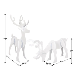 Add a festive touch to your holiday decor with our 3-D Reindeer Props! Perfect for Christmas and winter celebrations, these novelty items come in two sizes, making them a standout addition to any festive setting. Each package includes two reindeer props measuring 37 inches x 54 inches and 54 inches x 29 inches and assembly is required for an easy setup. Designed for indoor use, these charming reindeer props will help create a cozy and magical atmosphere. With 2 props per package and 4 packages per case, you'll have plenty of decorations to enhance your holiday space!