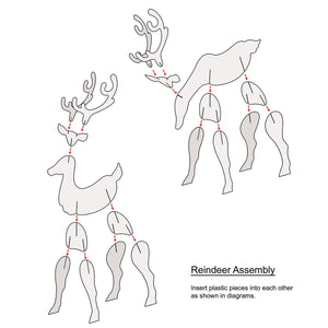 • Sizes: Two reindeer props: 37 inches x 54 inches and 54 inches x 29 inches