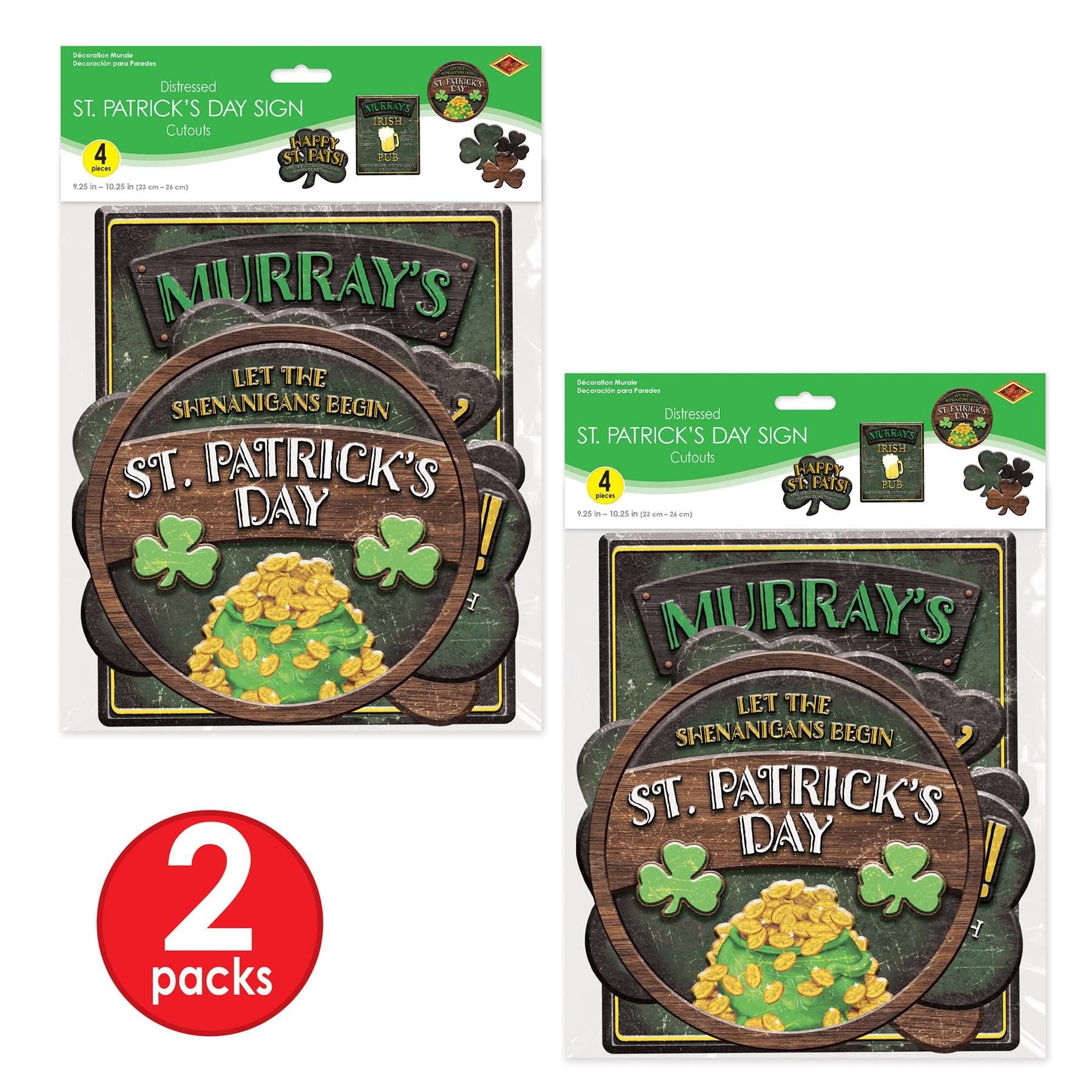Celebrate St. Patrick's Day with these printed cutouts! Each package contains 4 cutouts, sized 9.5"-10.5". Get 12 packages per case for your holiday decorations.