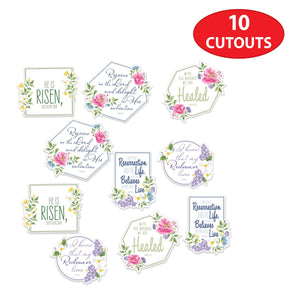 Celebrate Easter with these printed He Is Risen! Cutouts. Package includes 5 cutouts in sizes 8"-11". Buy 12 packages per case.