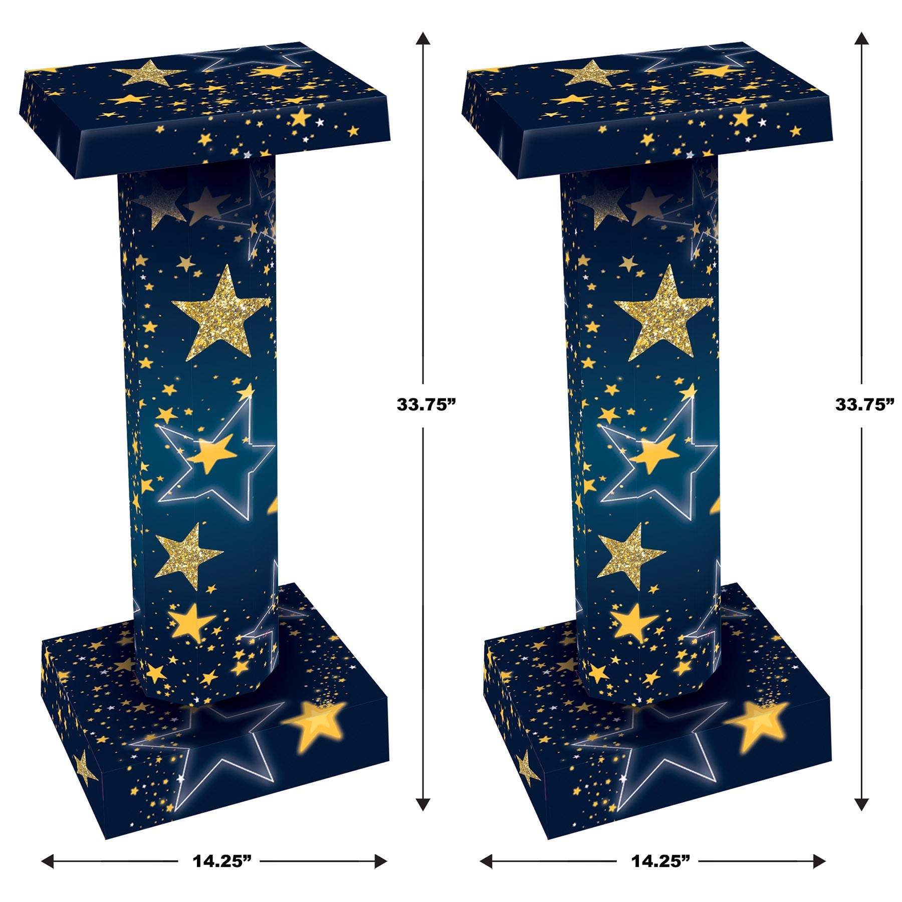 Experience the enchantment of celestial elegance with our Company's Starry Night Short Column Props, proudly crafted in the USA by our skilled artisans in Pennsylvania. This set includes two 3-D columns, each standing at an elegant 33.75 inches tall and measuring 14.25 inches wide. Crafted from sturdy corrugated cardboard, these columns radiate celestial charm, infusing your awards night, prom, or any event with a touch of magical splendor.