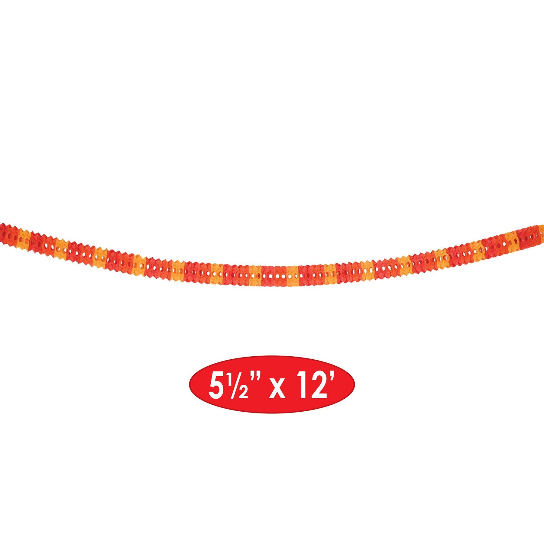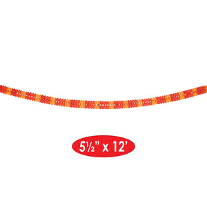 Product Description: Make your next Fall/Thanksgiving party extraordinary with the Packaged Arcade Garland from BulkPartySupplies.com. This 5.5" x 12' garland is made of golden-yellow, orange and red tissue paper, and comes in a package with one garland. This festive garland is perfect for adding a cheerful touch to any Fall/Thanksgiving themed celebration. Hang it on the wall, over doorways, or use it to decorate the buffet table. It's sure to be a hit with everyone. Plus, it ships from our Pennsylvania warehouse within one business day, so you can be sure to get it in time for your special occasion. With the Packaged Arcade Garland, you can create a beautiful and memorable Fall/Thanksgiving atmosphere at your next party.